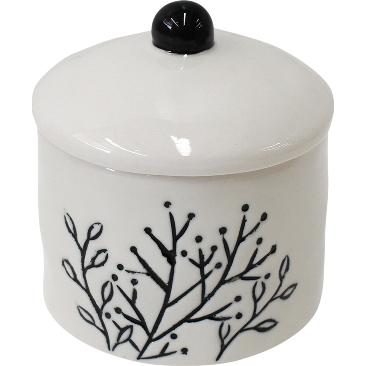 The Candle Simple Leaves has an unusual feature - a lid that is just as elegant as the lovely ceramic bowl containing the wax. The lid has a domed appearance with the pointy dome being luxuriously lacquered using jet black colour. The ceramic candle/wax holder is made in a portable cylindrical form which measures the same 8.5 centimetres in both its length and width. But with the inclusion of the lid, it stands at 9.5 centimetres tall in height. The unsullied white glazing is punctuated by artfully rendered black painted images of leaves creating the perfect backdrop.