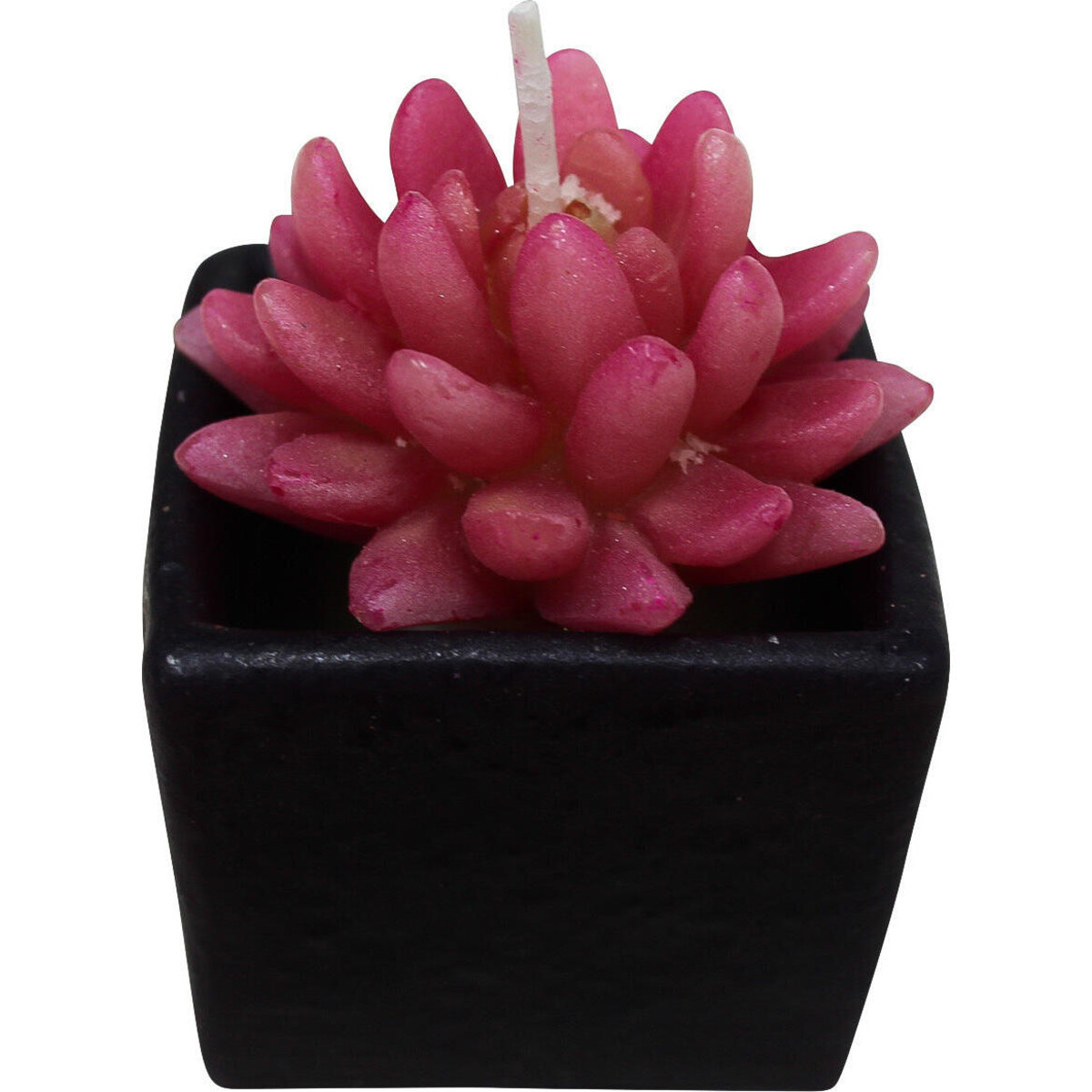 Decorate your smaller shelves, coffee tables and surfaces with the simple beauty of this faux succulent in a pot candle that is an ideal choice for any occasion. Carved by hand from quality wax, it has a textured finish for a realistic look along with a glossy glazed shine for aestheticism. The tiny succulent rosette is carved to resemble a blossoming flower for a modern take on the classic feminine style and is sure to bring natural beauty to any aesthetic or environment. This pretty little plant candle makes a cute birthday present or housewarming gift for a friend or loved one.