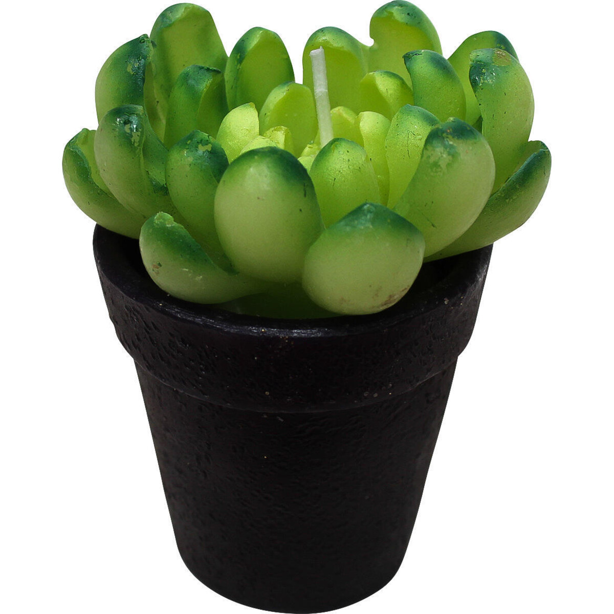 Light this candle to illuminate a garden or room area stylishly in the evenings or use it as a pretty little decor item or table centrepiece during the day. Created for our discerning buyers, each care-free potted candle is carefully handcrafted to look just like the real thing. With its scalloped leaves that are thick and fleshy and carefully coloured in tones of green, this faux succulent candle in a little black pot looks very realistic. It has dimensions of 6cm x 6cm x 9.5cm in size and will add sculpted foliage along with illumination to botanical arrangements.