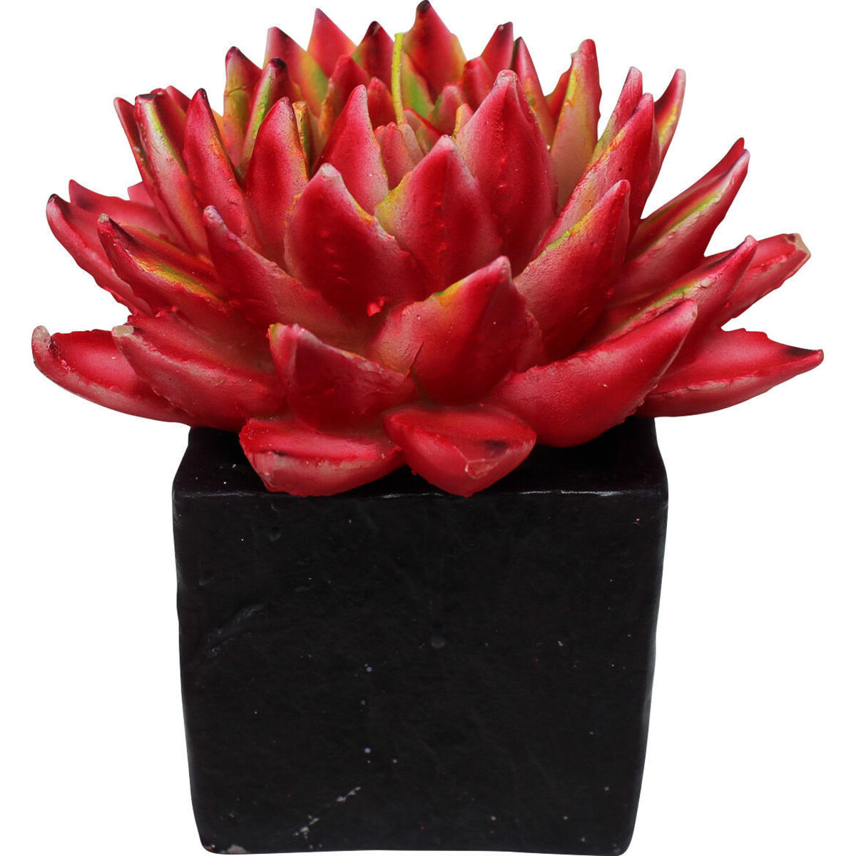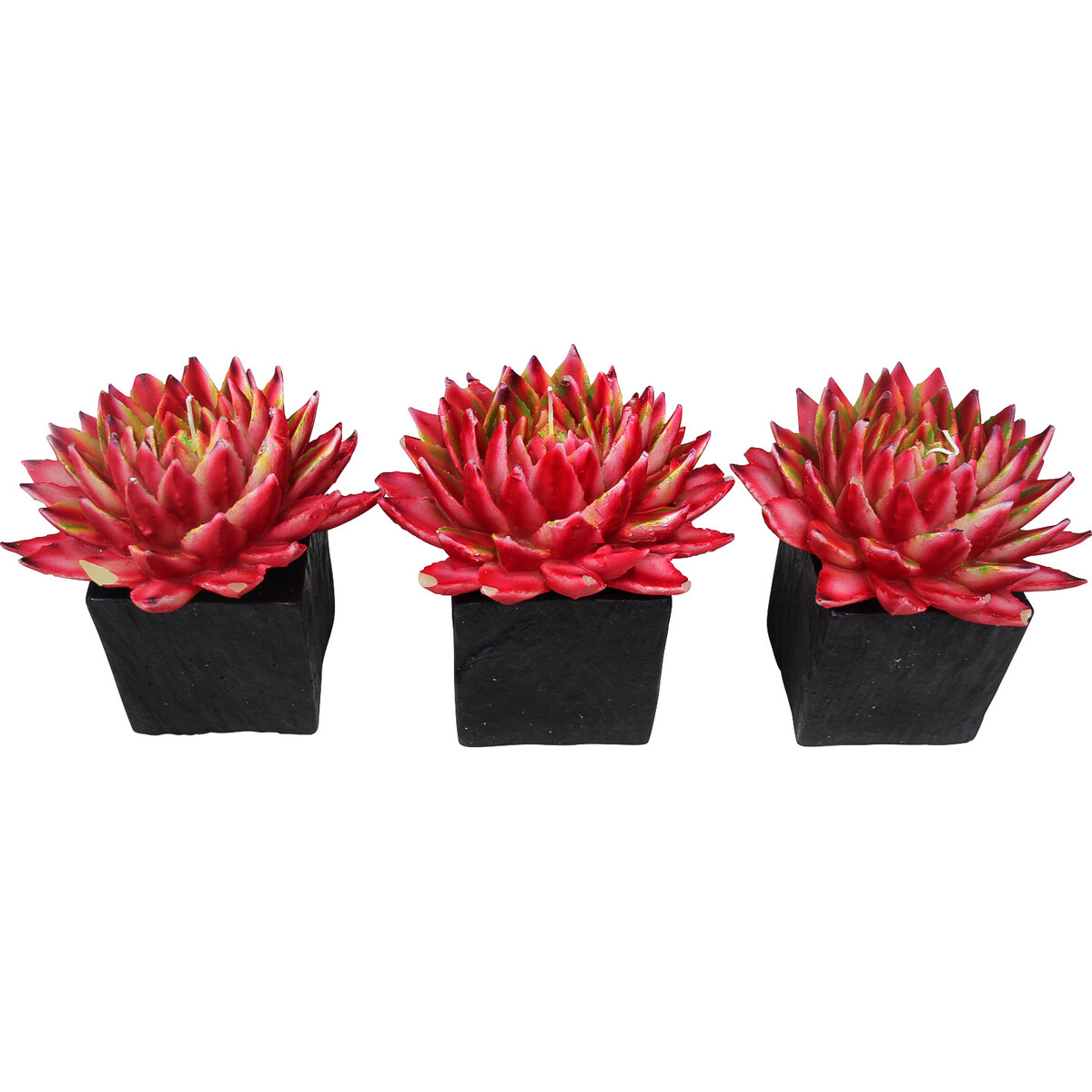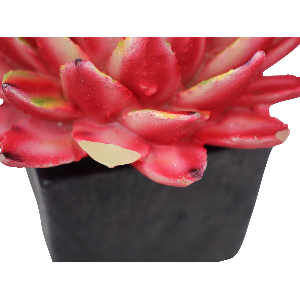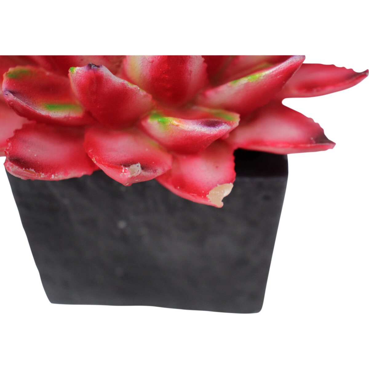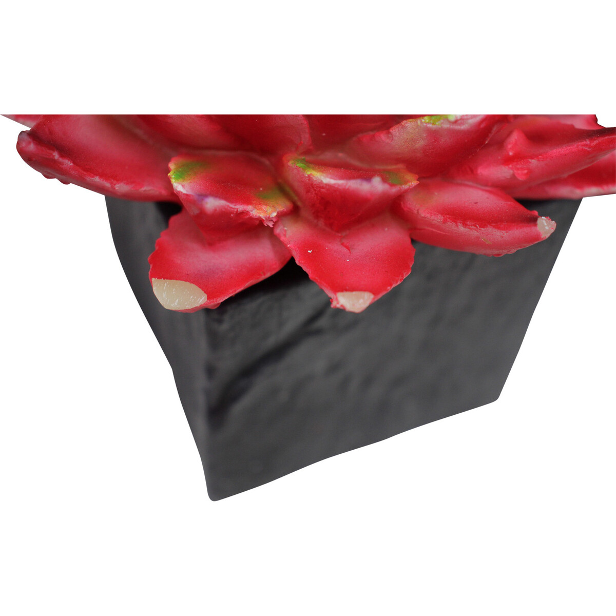 Surround any space with the soft glow of this potted succulent candle for an enchanting glow to give ambience to any living area. This particular species has upward growing pointed leaves in tones of red with a slightly greenish yellow colour to its inside edges creating a realistic appearance. Cluster a few of these together on the dining room sideboard to find the right light for family dinners and festive get-togethers, or spread some out around the living room to create a cohesive look in the entertainment space.