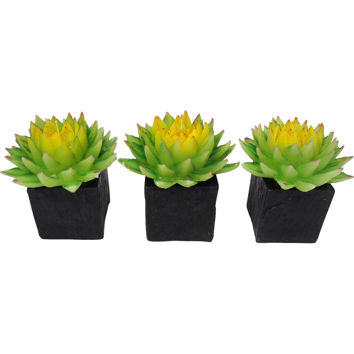 The lovely succulent shape combined with the deliberately serrated finish on each leaf gives this collection of candles a textured effect that is perfectly on trend. The painting in different tones of green and yellow with crimson tips gives the candle a realistic look and feel. Trust this lighting accent to play out the magic in the simplest of ways with its flickering candlelight throwing hundreds of shadows all around. It stands at 17cm high with 13cm in width and length.