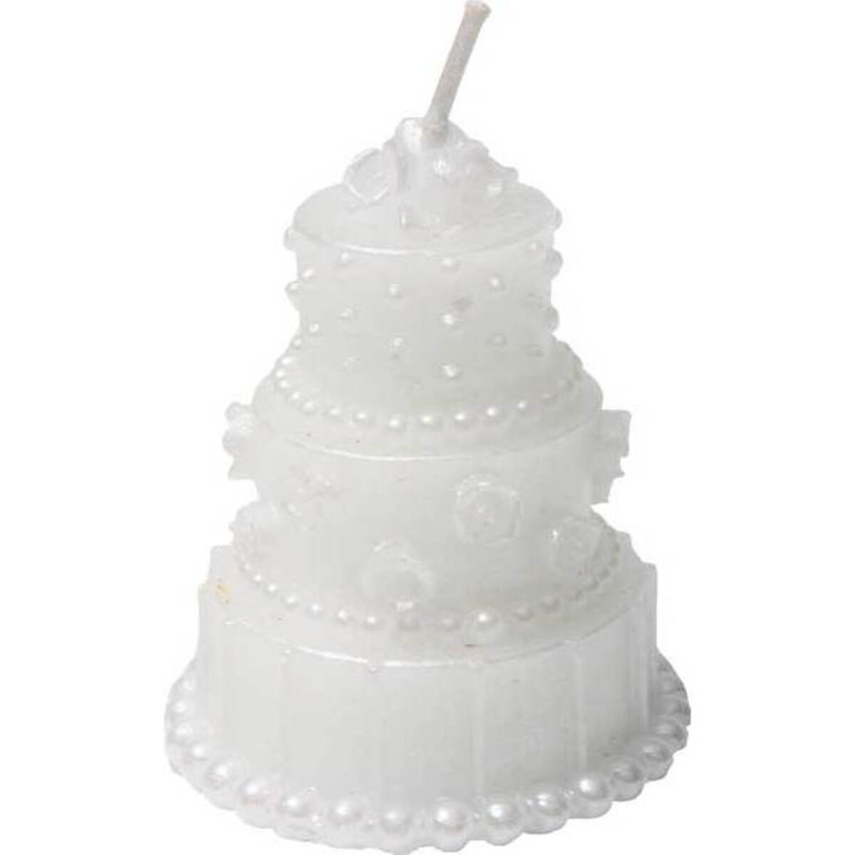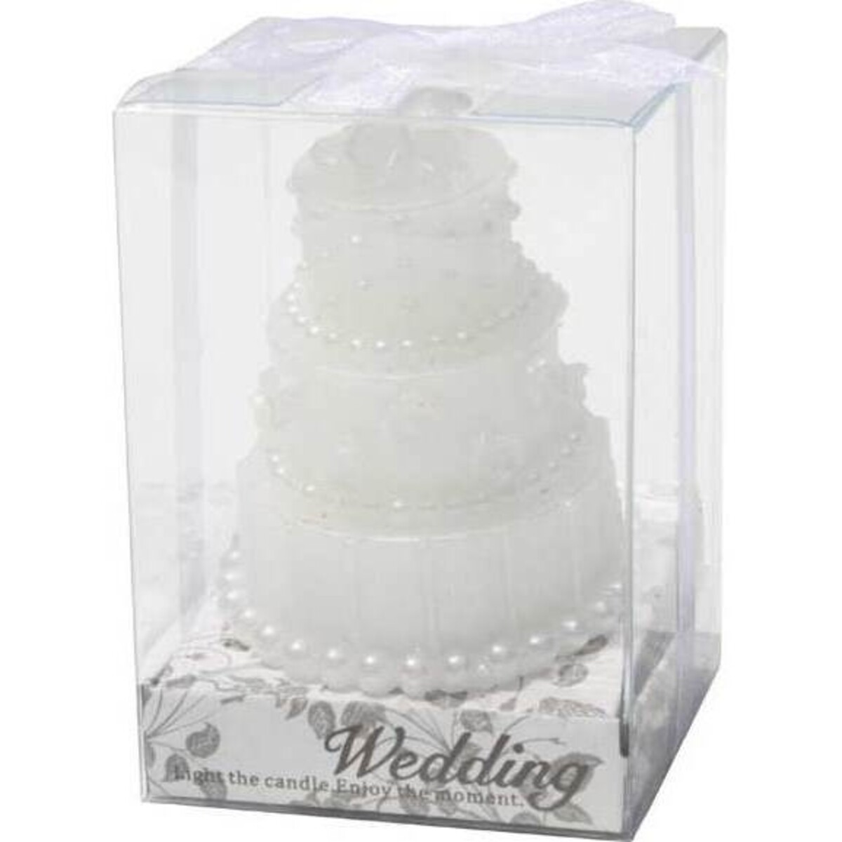 The wedding cake candle is a highly unusual and original decorative feature that is sure to wow the bride, groom and guests. These simple but ornate candles add the perfect touch to any wedding decoration. They can be placed on tables for receptions for the classic 'White Wedding' look or place them near doors to set the mood upon entry. Each candle is seven inches high and decorated like a wedding cake. Sculpted pearls ring the base and every terraced level. The middle of the candle has a bouquet of wax roses with a final rose at the peak of the cake. The candle's wick emerges from the centre of the crowning rose. The wedding cake candle is a beautifully designed decorative feature that has instant visual impact, and they will make a wonderful keepsake that can be treasured forever as a reminder of one of the most important days in a couple?s life.