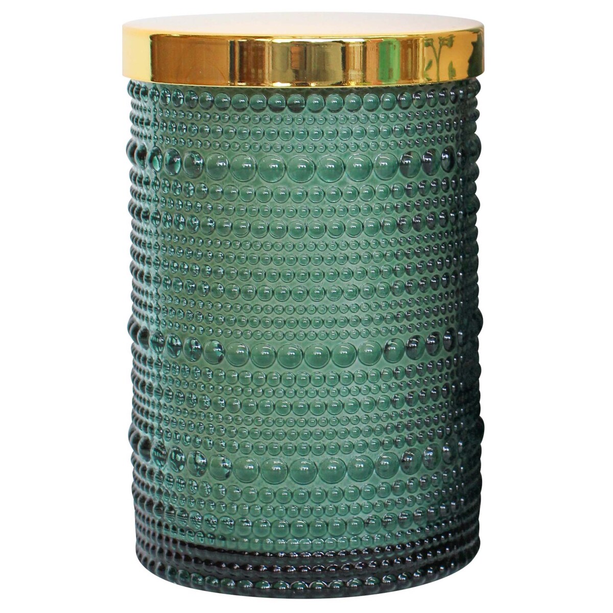 We're always looking for pieces that work as both homeware and a gift item, and that's exactly what this Candle Xmas Jungle brings. The shape is classic, but the deep jungle green with a ridged, bubble-glass texture really adds dimension. A real statement piece. It's a touch glam with the golden lid, but it’s never tacky - it just has an upmarket feel. And with these dimensions - 8x8x12.5cm - they’re sized right to create presence on any shelf or side table. We’re finding they're great in living rooms, bathrooms, even in an office space when you want to lean into that little bit of luxe.