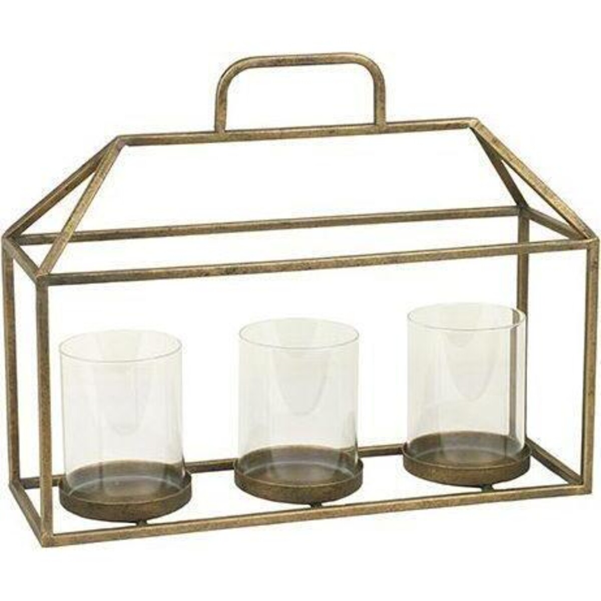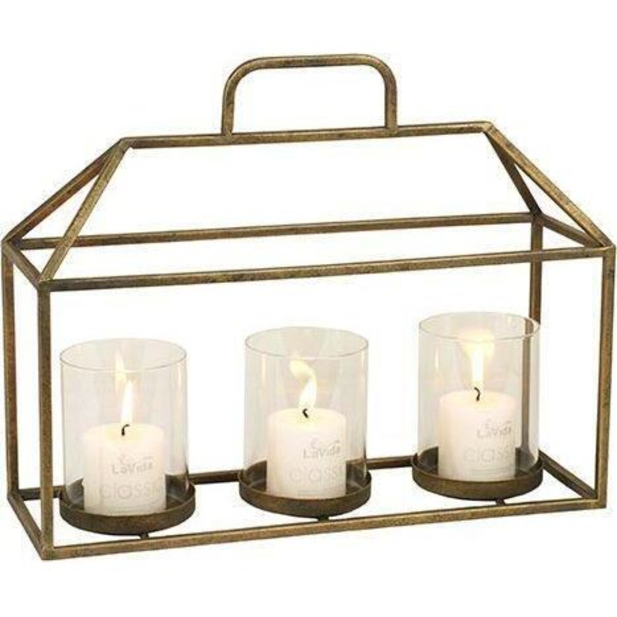 The wonderful inclusion of candle lighting helps enhance the décor in great way helping soften harsher lines and brightening up the often - neglected spaces. Here is a great way to embolden the look of your décor with this large and gorgeously created piece made of glass and metal. The bronze frame of the case and the clear glass helps make the light shine right through and the delicate notes of the metallic shine adds a touch of sparkle as well. Here is an essential element in décor given a completely new look helping you enhance certain spaces that are often left neglected. Could be placed on shelves, mantles, tables and consoles and help you make quite a focal point with its illumination. The length of the case itself is 36 cm and the height about 29, rising as it does, and on top is a handle that makes carrying and placing it anywhere as much easier. A wonderful addition for your decor be it for outdoor use or indoor.