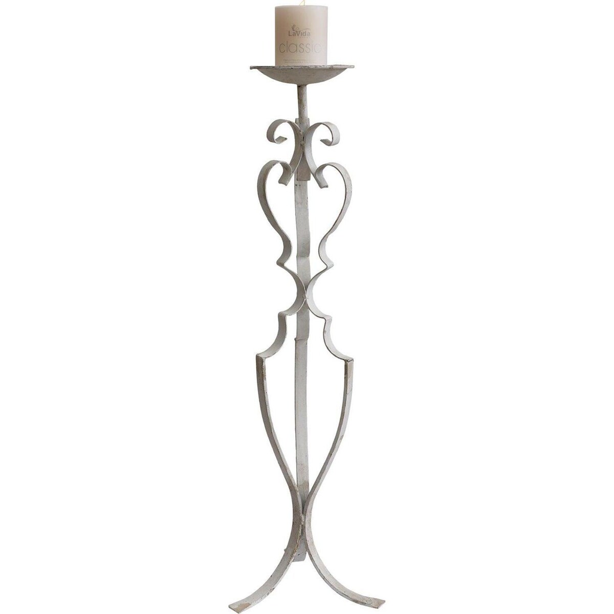 A hard to miss piece this 80 cm tall metal stand will hold large pillar candle and can be used as much on the floor as it acne be on a low corner table. The very usage of candles in lighting adds a romantic glow to the décor, so warm and inviting that any space begins to glow with its own warmth and feeling of a vintage appeal hard to resist. Lights from candles always helps in erasing harshness of edges and makes things seem sublime and beautiful, building the right kind of mood and making things around in its light glow with a certain kind of beauty. Expertly crafted from metal and given a shabby chic finish this tall candle stand will be well balanced standing as it is on its three pronged legs and since it is also quite tall it has a design width of 25 cm which makes it more stable. The candle holder has a lovely antique kind of design structured form a flat iron rod that ahs distressed paint all over and marks of rusting that adds more of a retro charm to its look. Use this to draw attention to a corner that is often neglected and build in more charm into your interiors by using these classic candle holders on offer from Lavida.
