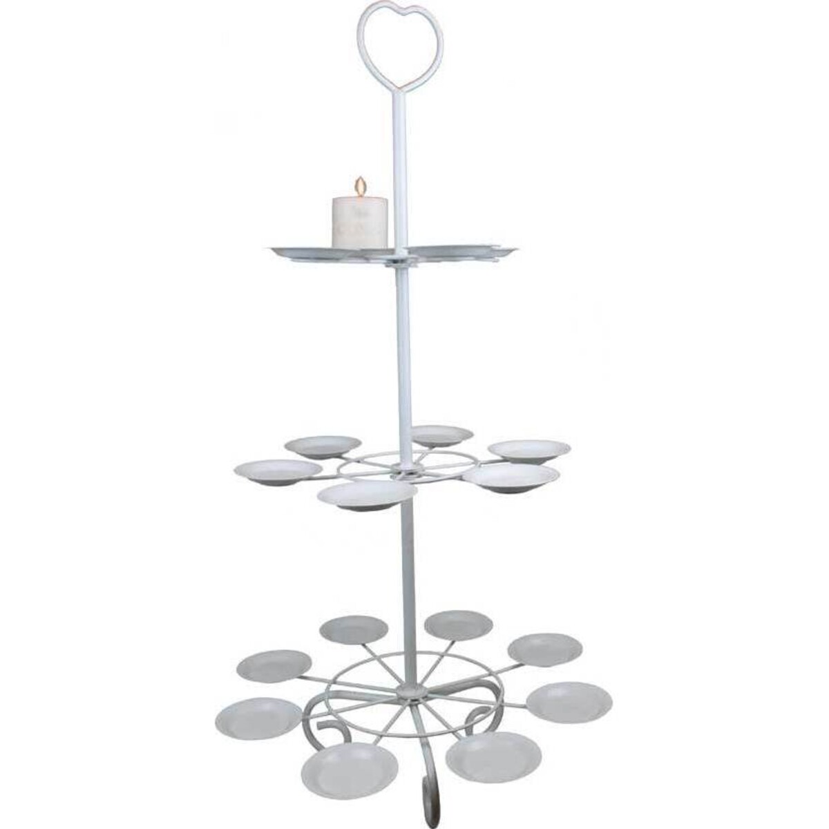 Introducing the White Casar Candleholder from Lavida. These white candleholders feature three layers of round plates that can fit a single short pillar candle on each. To ensure a sturdy surface, there are three curved legs at the bottom. At the top is a single open heart shaped design. These candleholders are a beautiful way to add style and design to any table, especially when you have guests coming over. The best part is that, thanks to the colouring and design, they can incorporate well into a variety of settings, and can even be used for special occasions such as weddings and baby showers.