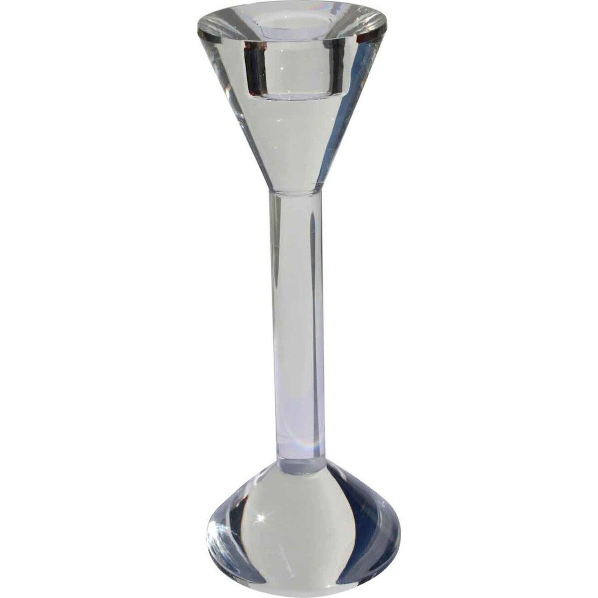 The seamless characteristics of Candleholder - Cone - Small add up to its contemporary and modish design. It looks like one cut of glass crystal finely shaped and crafted into a perfectly coned candle holder. It has reverse triangular shaped upper layer down to its smooth and slimmed body or stand. The accessory culminates with the cone shaped base which boosts its overall aesthetics.