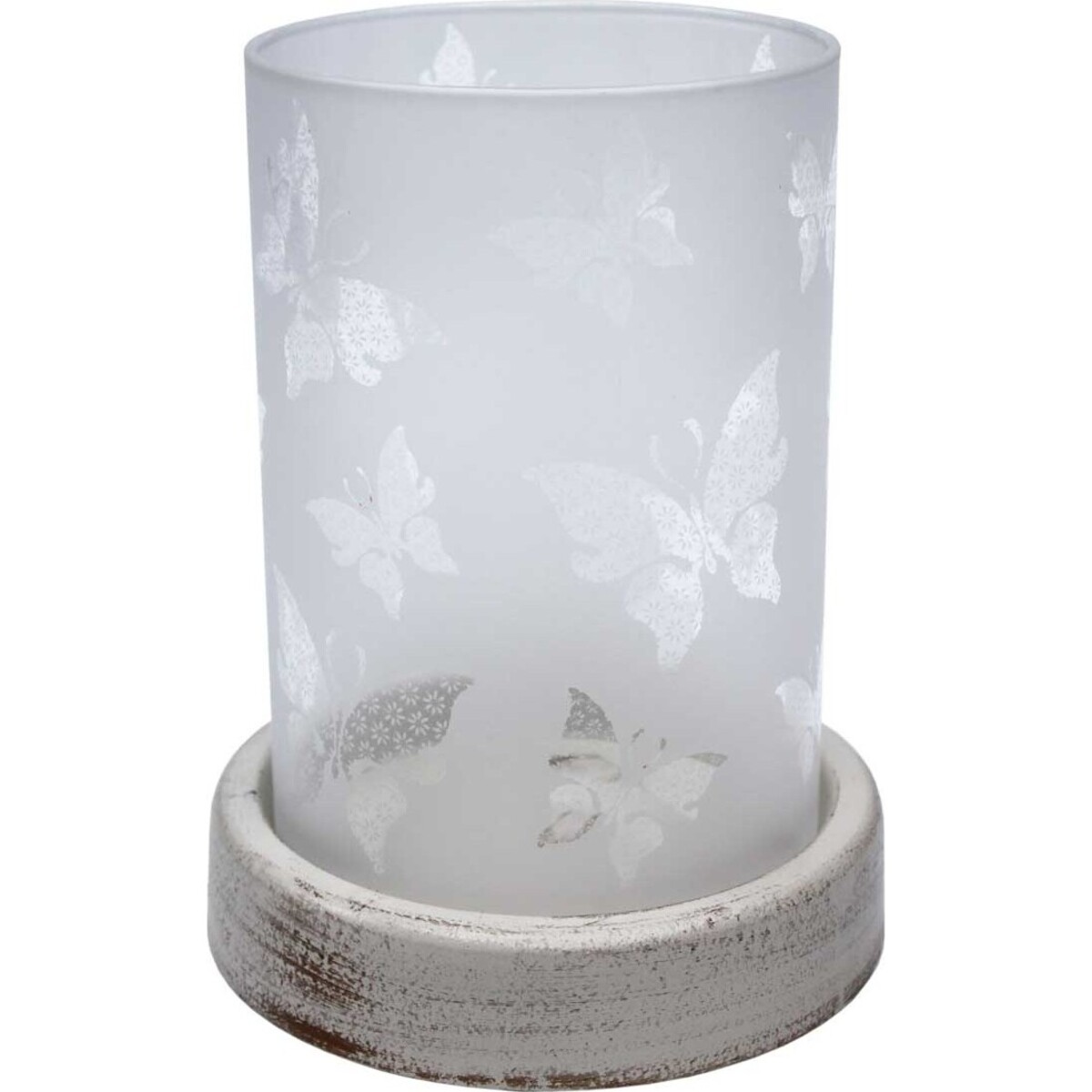 They have several transparent embellished butterflies in various sizes and styles printed over the frosted cylindrical shaped glass. Their design allows for light to shine through the candle holders once the candles are lit. The cylinders sit in a thick white round weathered base which only adds to their appeal and style. Their small size allows for them to decorate almost any minimal area that needs a touch of class and elegance. Due to their small stature, they would look especially lovely on dressers, end tables and fireplace mantles. Short white, ivory or silver pillar candles would look best with these decorative pieces. Candles do not come with purchase. Everyone is going to want these stunning candle holders for their own or to give as gifts.