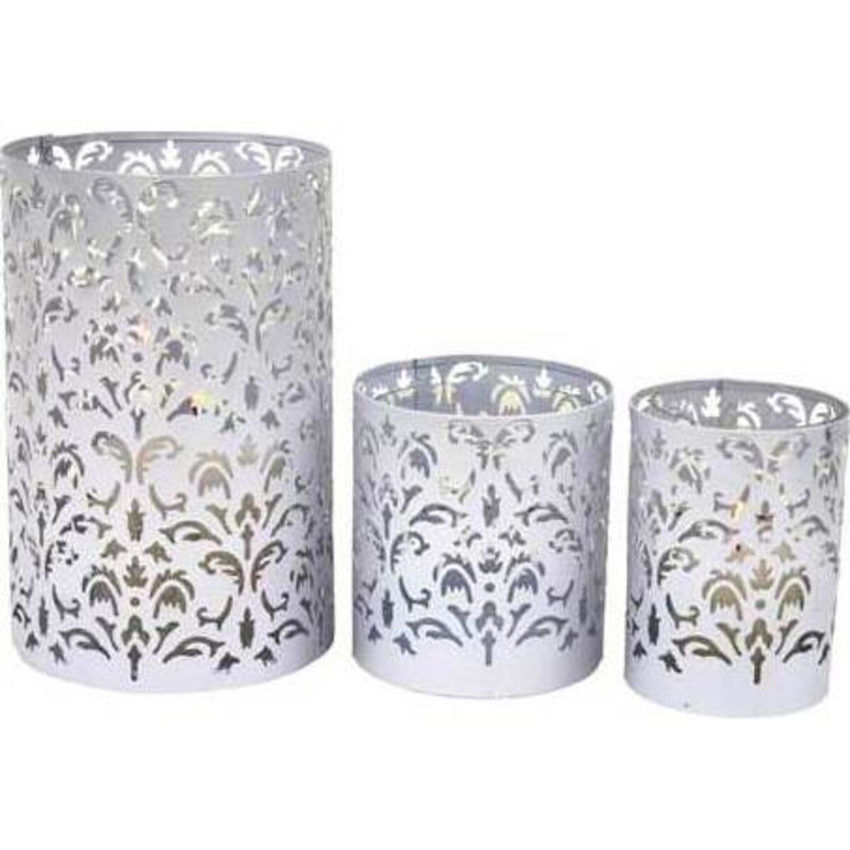 Candleholder Lis Grill S/3 is a special set of three distinct items of large, medium and small size. The large candleholder measures 11x11x24 cm, medium one 10x10x9 cm and small one 9x9x9 cm. Painting done on them all incorporates some shadow of grey. A glass holder lies at the centre of these candleholders, which are protected by a cylindrical - shaped metallic meshwork to their exterior. Buyers can acquire this set of three for illuminating various key spaces within an enclosed environment. They include the kitchen, living room and bedroom. One can also be positioned at the balcony or garden outdoors.