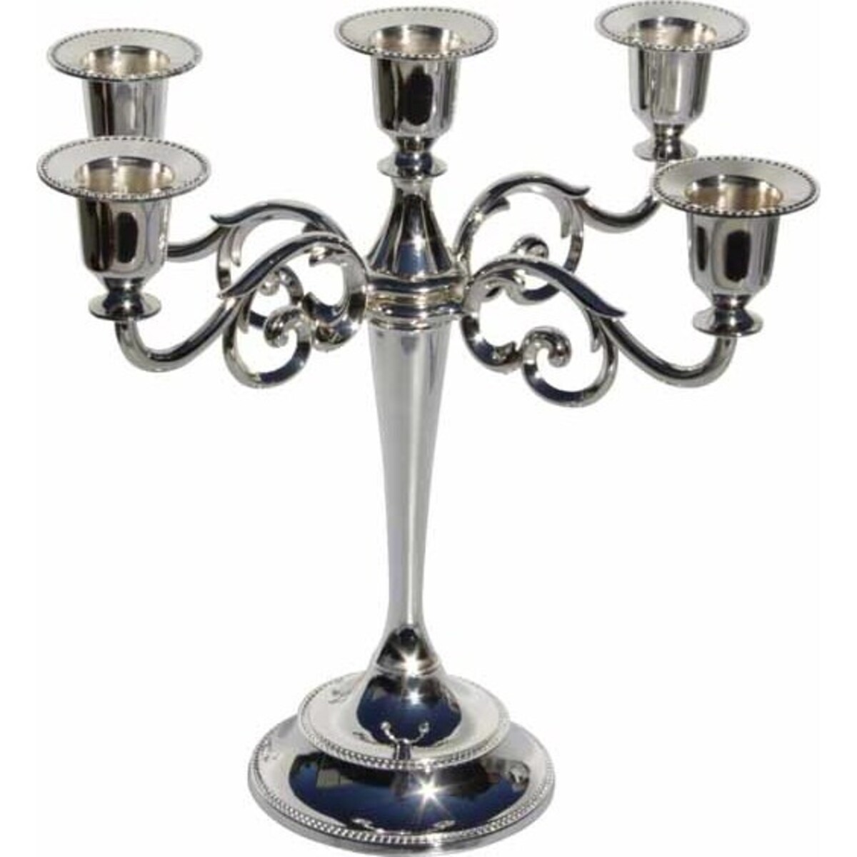 The Candleholder - Magesty Five is a perfect centerpiece among candleholders. It can hold five candles at a time and provides brighter illumination. The silvery and polished body adds to its brilliance.
