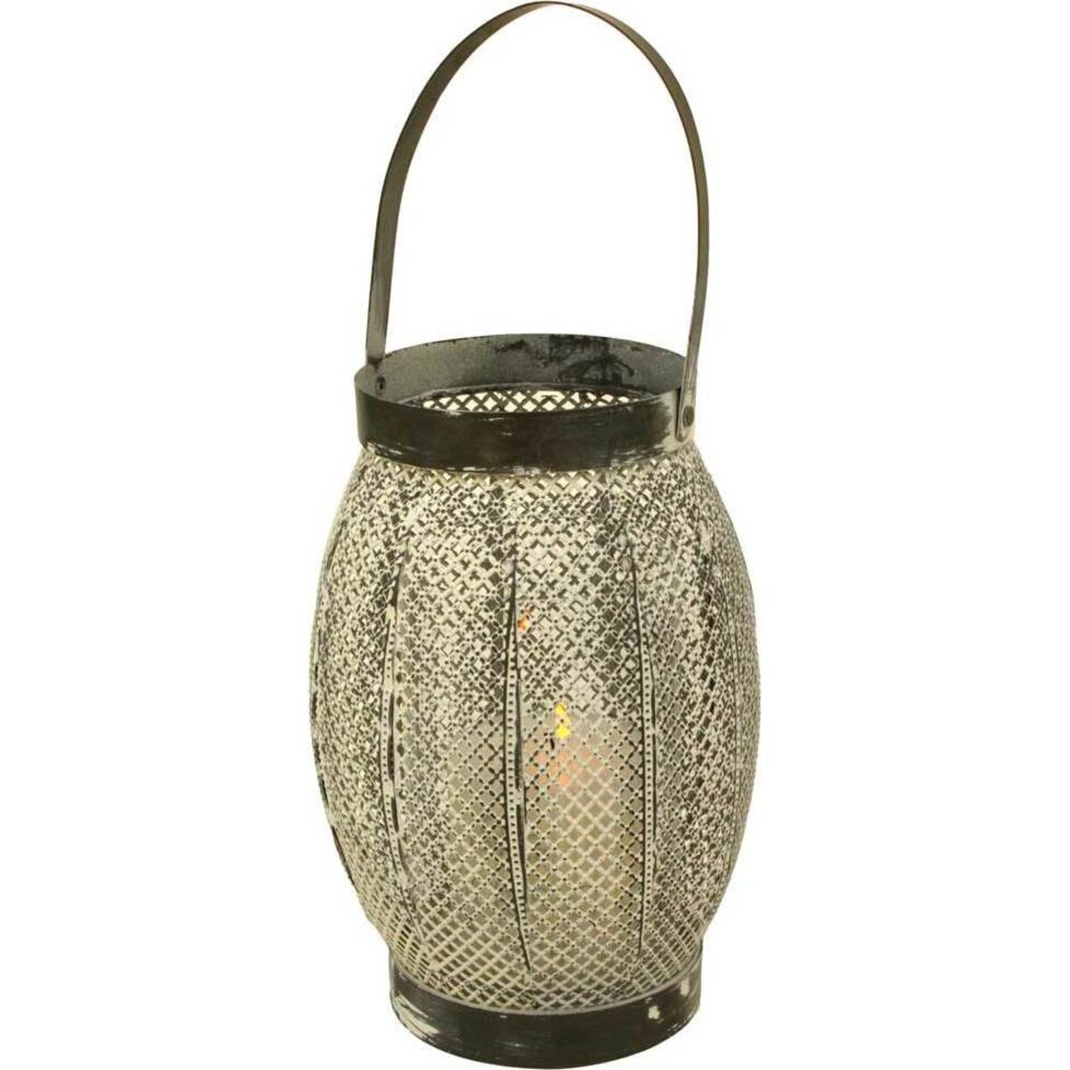 Candleholder Maille Large is a unique device measuring 15x15x37 cm, which features mesh - like outer frame shaped like a bulb, having a centre - glass for holding a candle. The meshwork is secured at the top and base with a black metal strip. A large handle is attached to the top for easy handling too. This item is a superb accessory for complementing the beauty of any room due to the glittering meshwork it exhibits that looks classy and infuses warmth into its surrounding. They may be placed at strategic positions within a hallway or walkway or even prominently located within the garden during outside events.