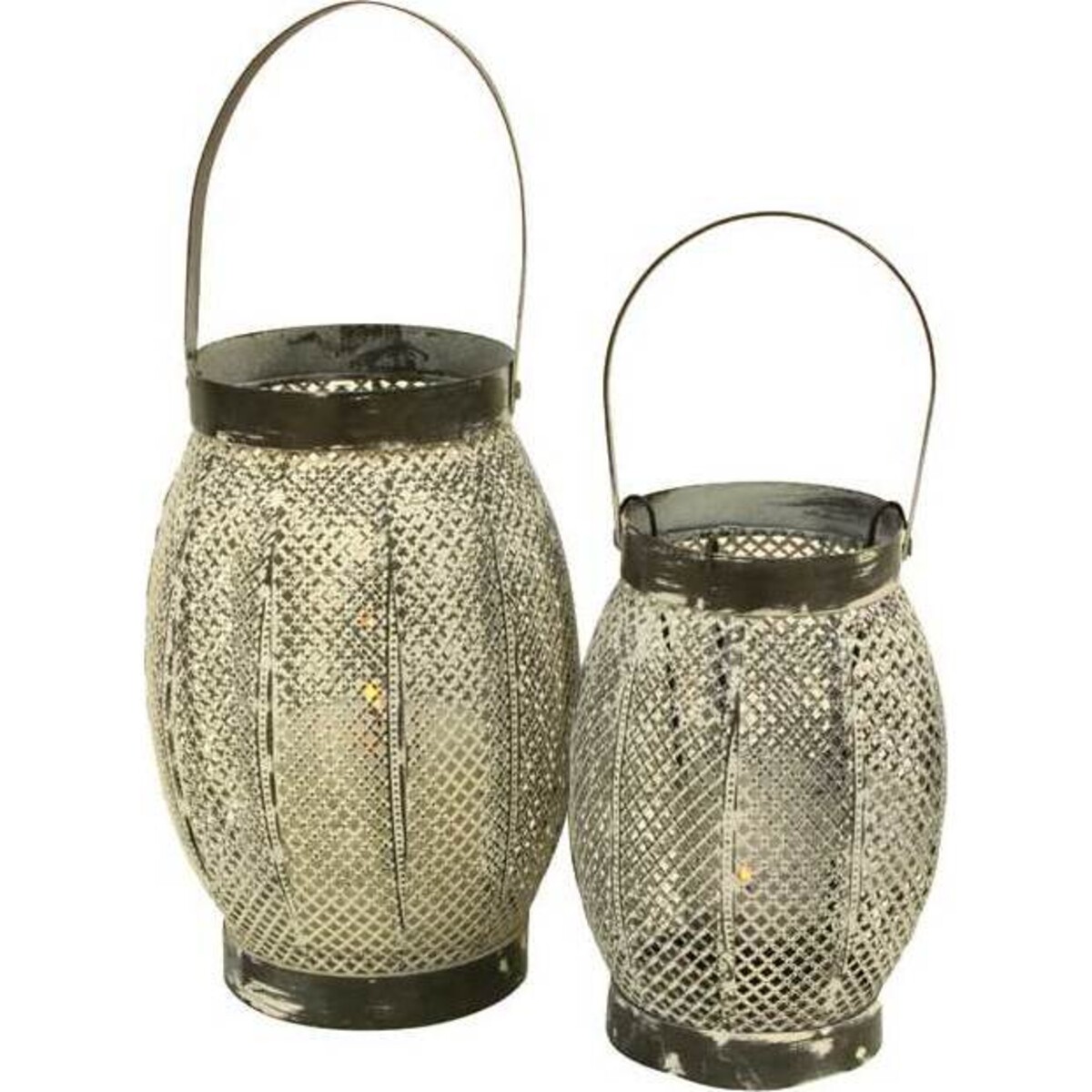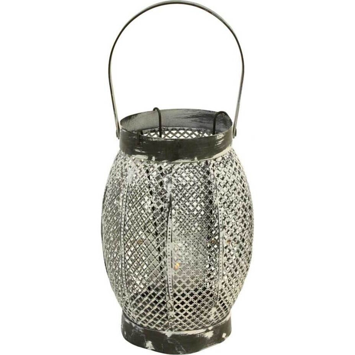 The item Candleholder Maille Small exhibits unique crafting, with measurements of 12x12x30 cm and features a frame meshwork that bulges out in bulb - like form. At the centre lies a tea - light glass for holding the candle, while the top and bottom parts of the meshwork are secured firmly using a black strip of metal. There is a small handle attached onto the top that provides easy handling. This outstanding accessory easily complements the appearance of any place, especially due to its dazzling nature. It adds a sense of classiness to an idle space and should impress guests in effortless manner.