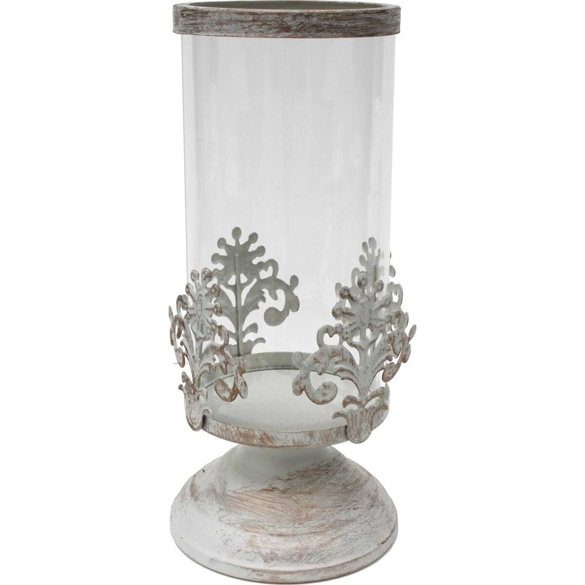 The clear glass provides an unobstructed view through the pieces and allow natural light and candlelight the ability to shine through beautifully. The stand and the very top of the white candle holders have a slightly worn appearance which only makes them that much more charming. They bright a touch of elegance to any room they're in and can completely change the feel and look of an area. The candle holders would look best in smaller areas including end tables, counters and fireplace mantles. For these decorative pieces, white, off-white or silver pillar candles are perfect to use. Everyone is going to want to display these candle holders in their home. Candles do not come with order.