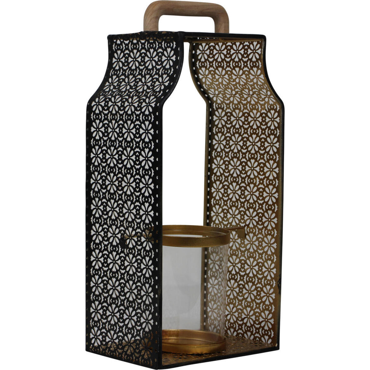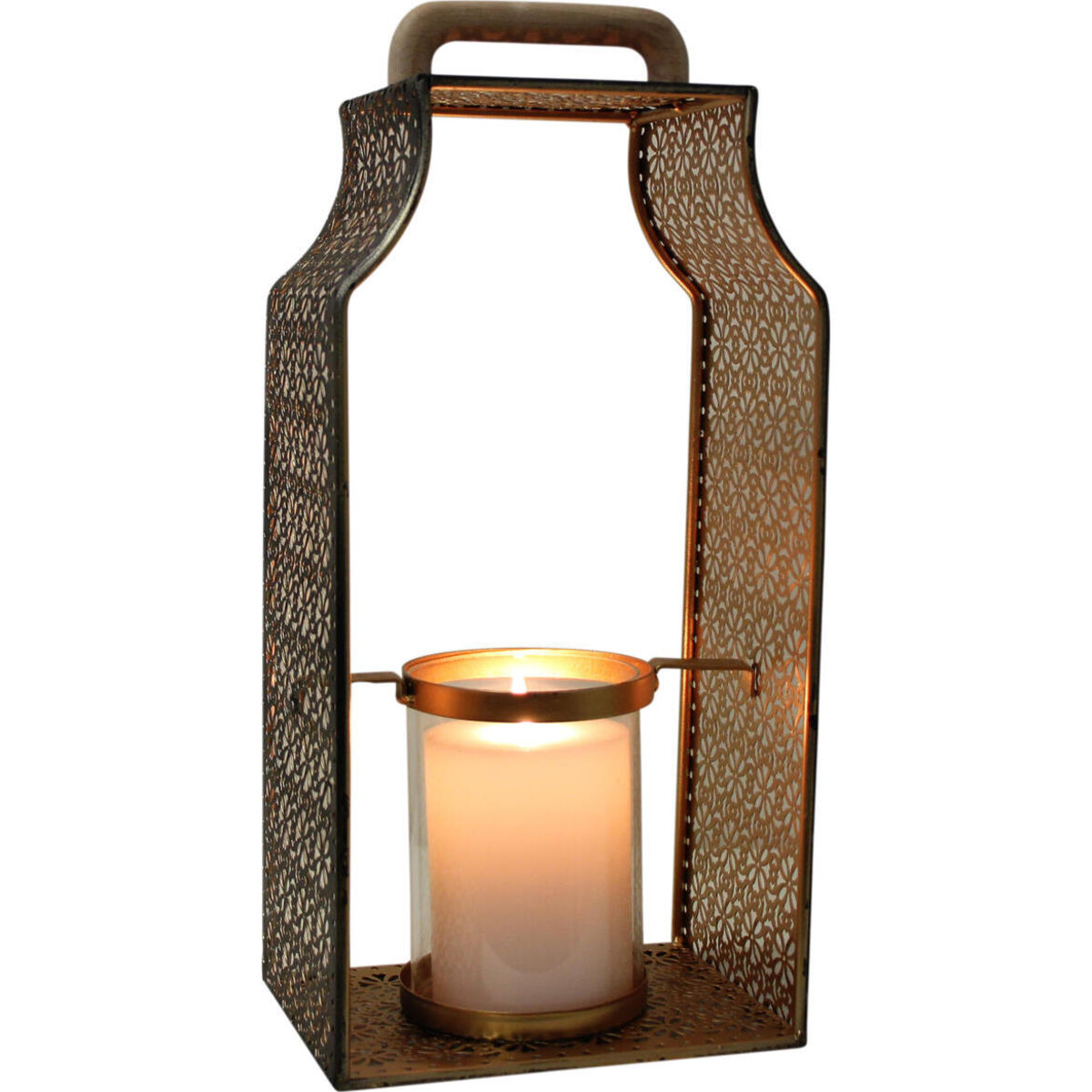 The mid-eastern design and pattern in Moroccan style items have taken the décor to quite another high when it comes to the numerous options in lighting. This somewhat modern feel design, comes with ease of holding. The candle-holding roundel at the base, with the chimney glass in place helps keep the candle from getting extinguished when in the outdoor. Carry and keep it where you feel the need to add a touch of mellow lighting and see how beautifully the glow of one single candle can make the inside of this gold coloured metal body come alive with a stunning kind of look. The alignment of the panels has been done so as to maximize on the illumination while also paying with the discrete impact of shadow, light and of course the design all over the filigreed panels which makes the lantern cum candle holder such a special piece.