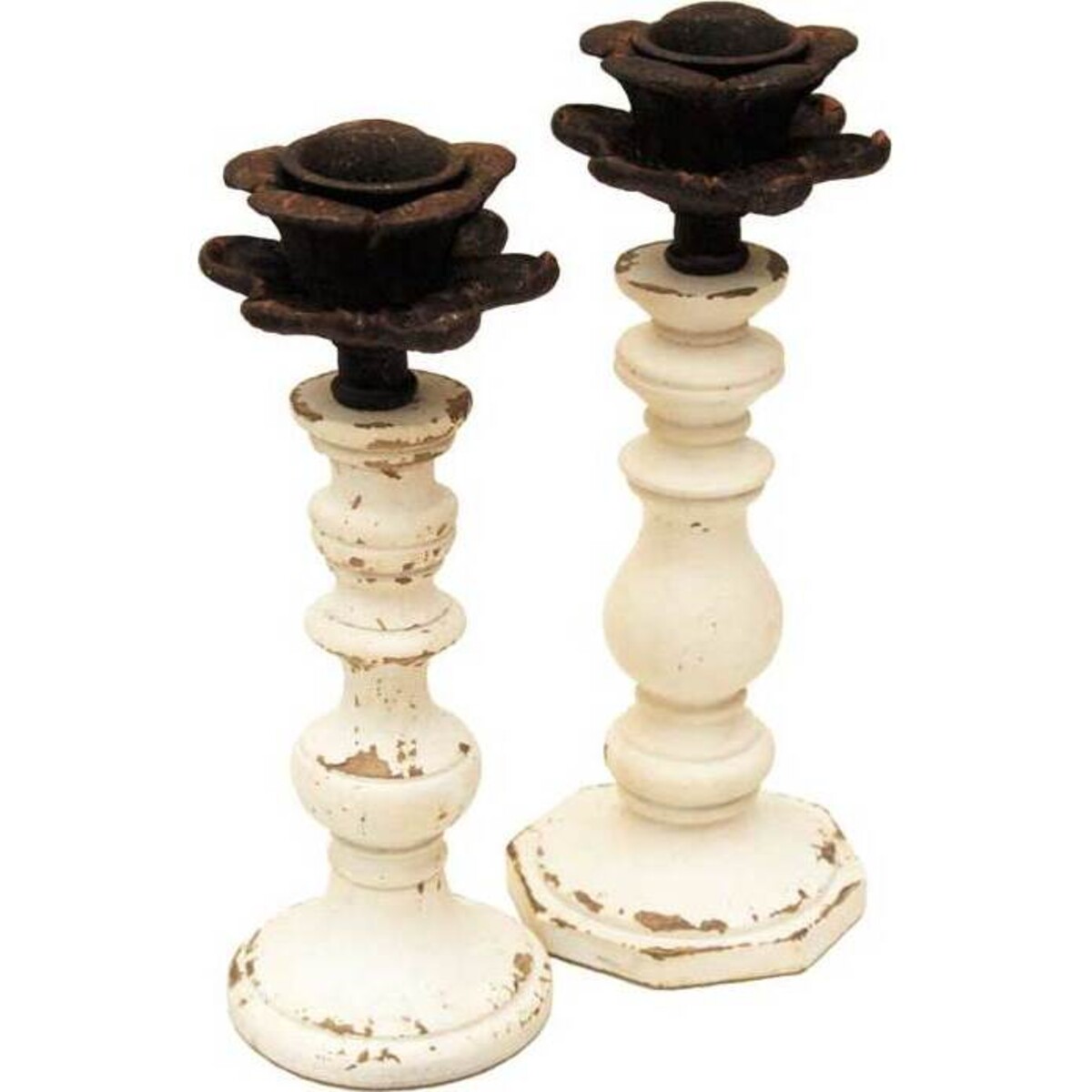 Introducing the Large Rose Top Candleholders from Lavida, the decorative accents that are sure to be a welcomed addition to your home and collection. The candleholders consist of a cream - coloured resin base and a dark metal rose at the top that has the centre cut out for the candle. From the tip to the base, they're slightly worn to give them an aged appearance. They're exquisite works of art that are also functional and ideal for daily use or to use for special occasions, such as a romantic dinner for two. Considering their fabulous design, they would make wonderful gifts for a wedding, birthday, or even Valentine's Day.