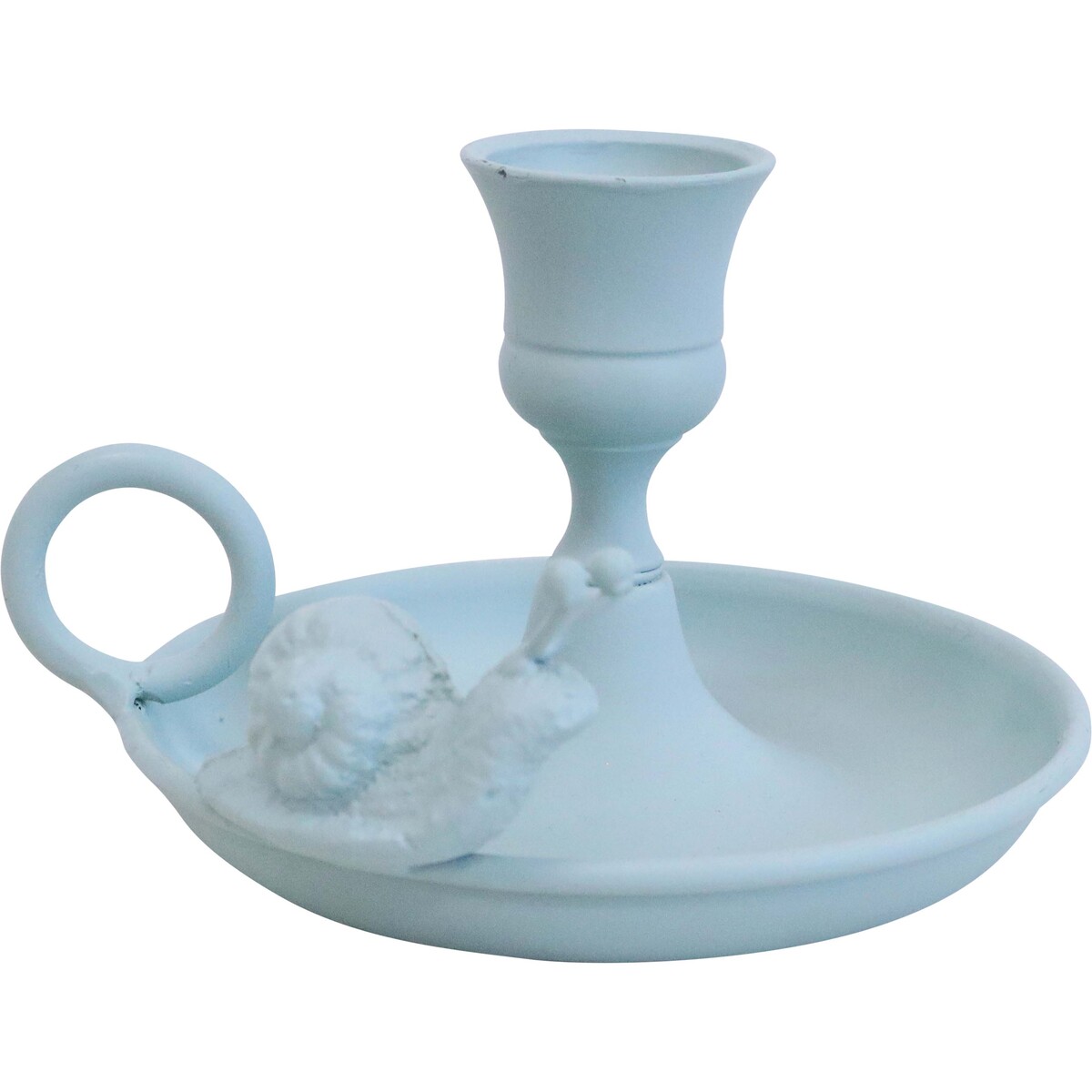 Right, this one’s a bit of a conversation starter - our Candleholder Snail. We think there’s something undeniably charming about the way that little snail perches on the edge of the candleholder. It’s funny and sweet all at once, and that powder-coated matte blue finish really does look lovely in the light. We’ve seen customers gravitate towards these for desks and sideboards, but they’re just as happy on nightstands and in living rooms too - anywhere you want to add a soft glow and a sense of character. And we find it works with everything from modern offices to more eclectic country cottages.