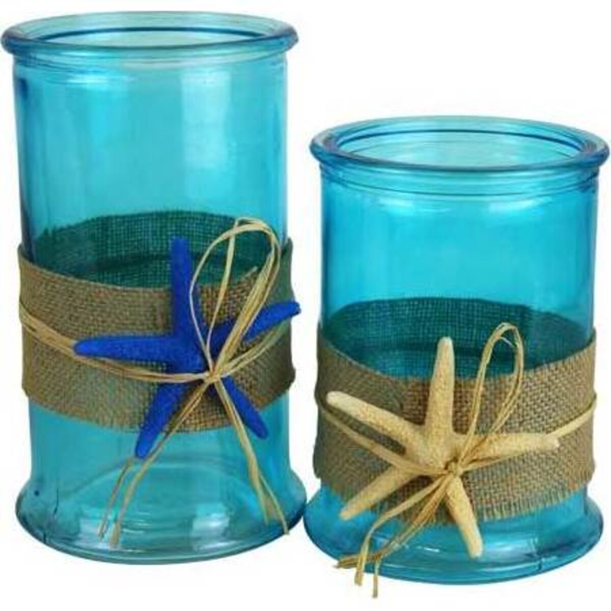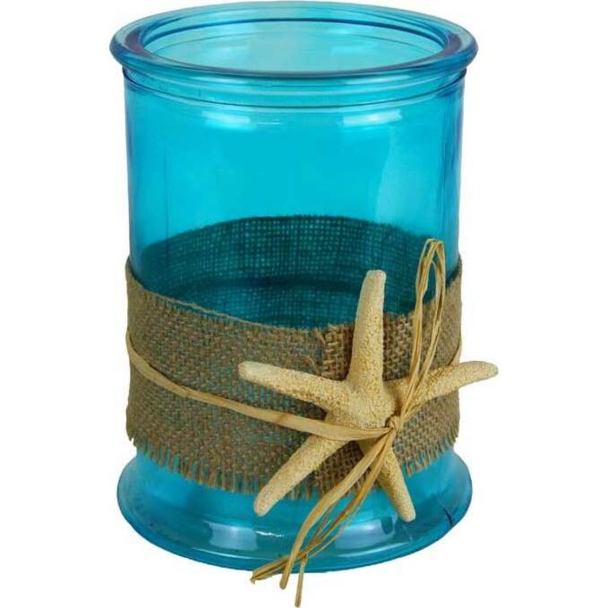 Candleholder Starfish Large is a sizeable and considerably stunted cylindrical glass for holding candles. It measures 13x13x17 cm and exhibits an aqua shade and comes decked in fabric band near the base with beige starfish tied around it using a rope. This adds to the uniqueness of its presentation, making it an amazing souvenir for friends, workmates and loved ones at special occasions. These include retirement and farewell parties, birthday parties and special anniversaries among other functions. Candleholder Starfish Large as well may be utilized for purposes of devotion or for setting up the table at romantic dinner events.