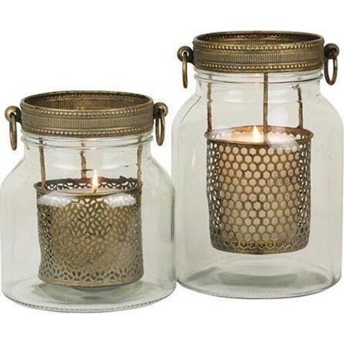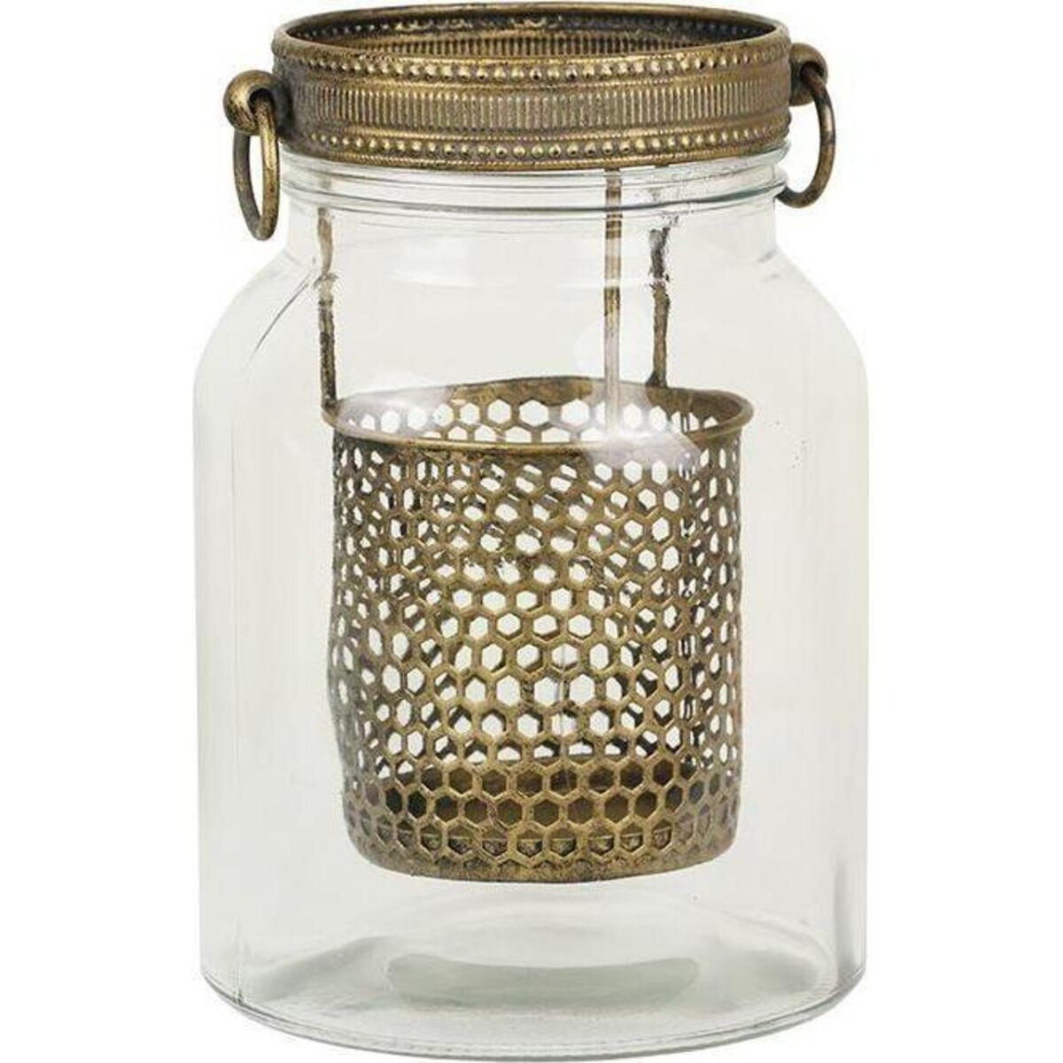 When home décor needs to make itself look more than simply appealing, it needs great illumination to back up all décor plans - after all it is from adding tiny highlights through candles, lanterns and votives, that we can build in that kind of charm. This mason jar like lantern has a metal mesh within which the candle can be placed. The height of the solid glass jar is all of 24 cm and the width at its maximum is 16, while the narrower mouth is all of 12 cm in diameter. The contrast the metal mesh compartment makes with the completely transparent glass jar makes it all the more interesting in its design detail. Here is wonderful addition to the table, a corner or the mantle shelf that needs a spot of definition - or a highlight that could help throw into prominence the artefacts placed there. Rustic, yet filled with a certain mid - eastern charm, the design is all the more pleasing because of the manner in which the metal is used at the rim and the two rings that help carry the lantern to any place that you feel would gain from its presence.