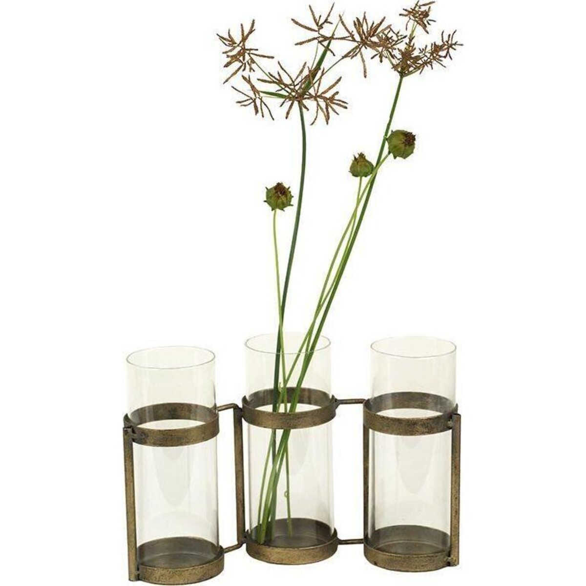 The three beakers have rings around them which gives the tall height a stability. The rings which are part of the design and structure of the metal frame makes the entire design easy to use, easy to dismantle and place candles in their respective spaces. And it is easy to clean as well when not in use. The stand is all of 16 cm in height with a length of 27 cm. You could easily place the candles in the round metal bases and then cover them with the glass, thus keeping them protected from the breeze and helping them glow with a constant and brighter glow. Here is design that is perfect for creating a more centred look in your interiors and the advantage of course is that since it has a glass cover that will keep the flame protected, it could be used outdoors too. Three candles in a row does make it a bright illumination option. Apart from that the gorgeous metallic colour contrasts so wonderfully with the delicate glass.