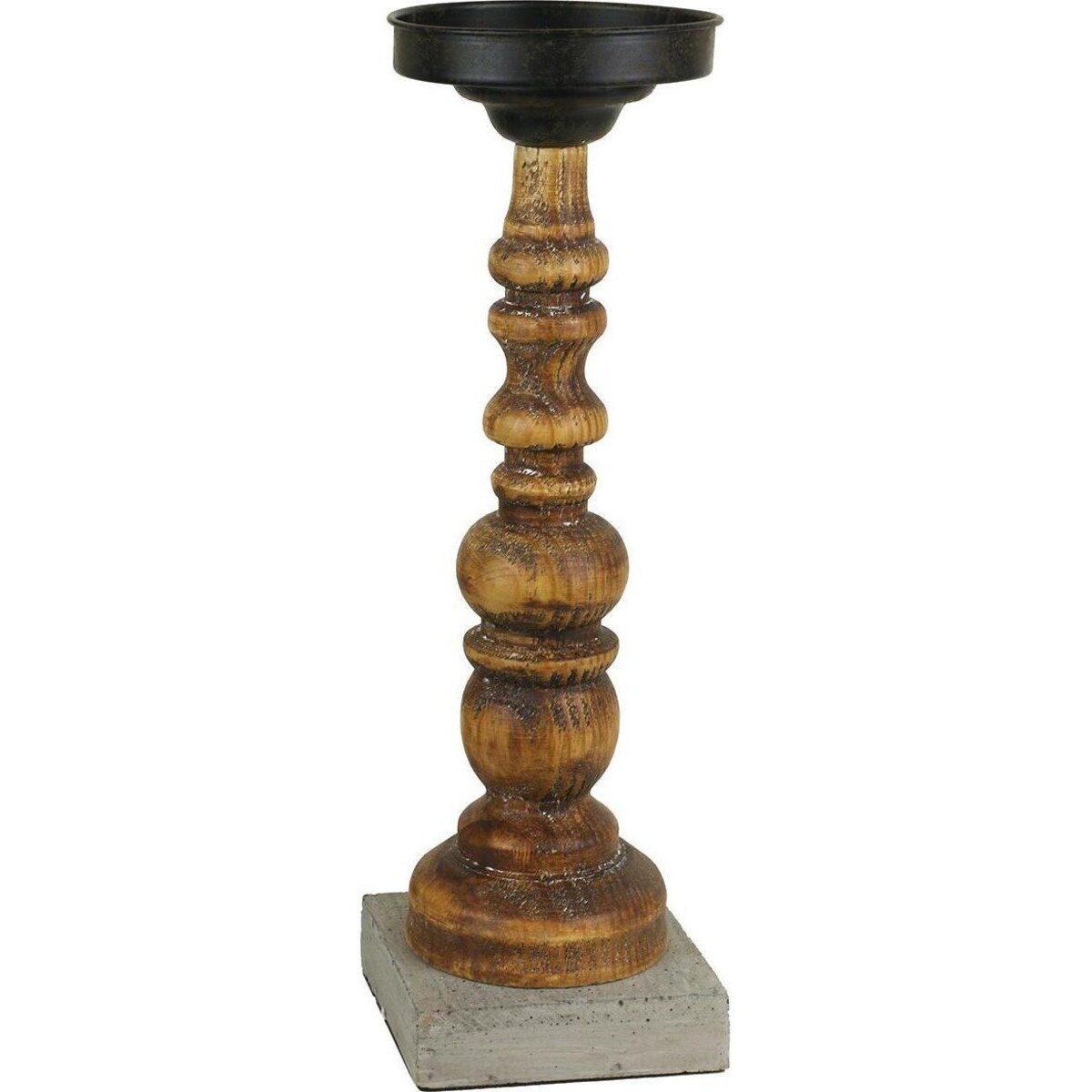 Add the long elegantly designed Troi candle stand to your spaces and make that vital difference in the way you illuminate your spaces. A lovely distinct design adds much style to the way your spaces begin to look. The wooden column has been cut and carved with adequate detailing and expert crafting and the contrasting top platform in metal painted a deep black as well as the base made of concrete lends it a very unique sort of finish. The height of the candle holder is 38 cm and the shape tapes to the top, while at its widest it s 12 cm in dimension. The candleholder could be teamed up with smaller versions of several candleholders. Spaces begin to look more inviting, cozy and the ambient lighting does wonders for spaces that have seldom look so great in its muted lights. A rather tall candleholder, with a touch of contemporary choice in material but with looks that is truly classic. Make it part of your living room or place t in some dull corner that could do with some more illumination - there are various ways to showcase the beauty f this candleholder and all would work wonders for your home.