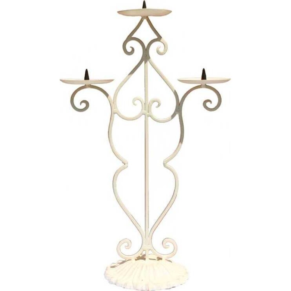 The Zag triple candle holder in cream is a stunning straight up and down piece that is simple and elegant in design and yet incredibly eye catching. The design creates shapes such as the curves of a woman?s body as well as an upside down heart shape. Three struts support the small circular dishes that are used for the support of candles. Within the centre of each support is a spiked stem that is used to pierce the candle and keep it in place. At 41 centimetres tall this wonderfully exquisite decorative piece will catch the eye without domineering the room in which it sits. The central candle support sits higher than the two side candles, creating a pleasing shape for the candle holder. The Zag triple candle holder would look wonderful in a living room, or on a dining table or even in a bedroom to create the effect of a boudoir.