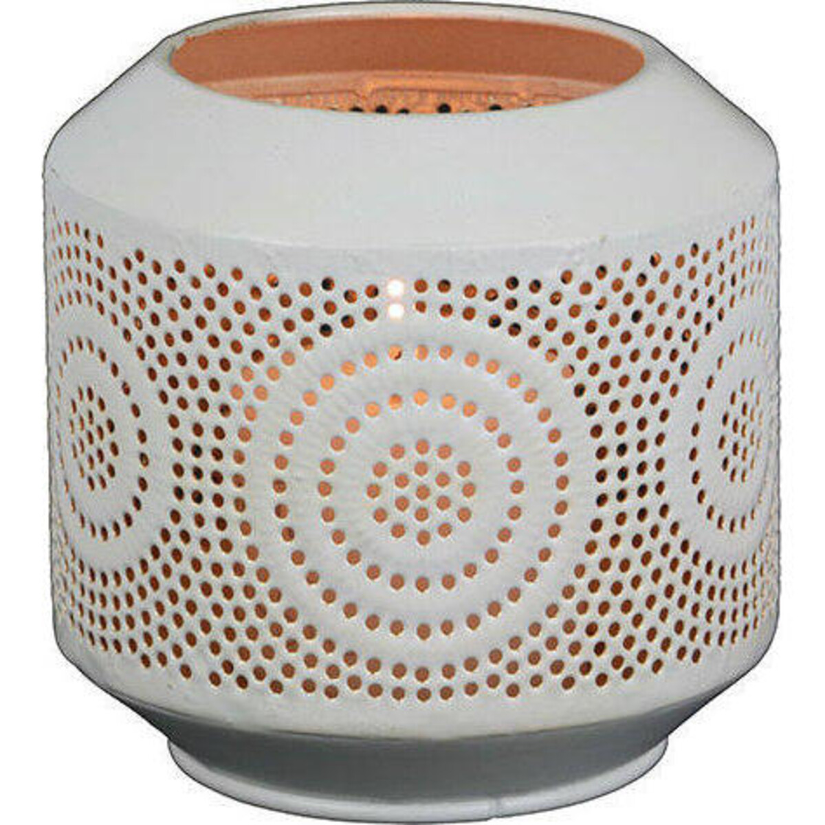 There can be few kinds of lights more dramatic in impact than candle light and when creating the right kind of atmospherics what could be better than cutwork pattern on the votive to do all the talking. This metal votive not only showcase the best on dotted cutwork design, it also has a warm golden colour on the inside that helps it enhance the atmospheric lights in the area. Could be used in clusters or on trays and table, in often neglected corners t would surely add more brightness and a certain depth. The fun of creative highlighting one can have with small lighting accents is possible with this piece. Made of metal, it can hold a small pillar candle and of course tea lights as well. The circular filigreed design will make the pattern in light filter out in the most stunning of ways. The votive will be your best means to light up spaces without too much fuss and lend it a superbly warm and comforting kind of glow.
