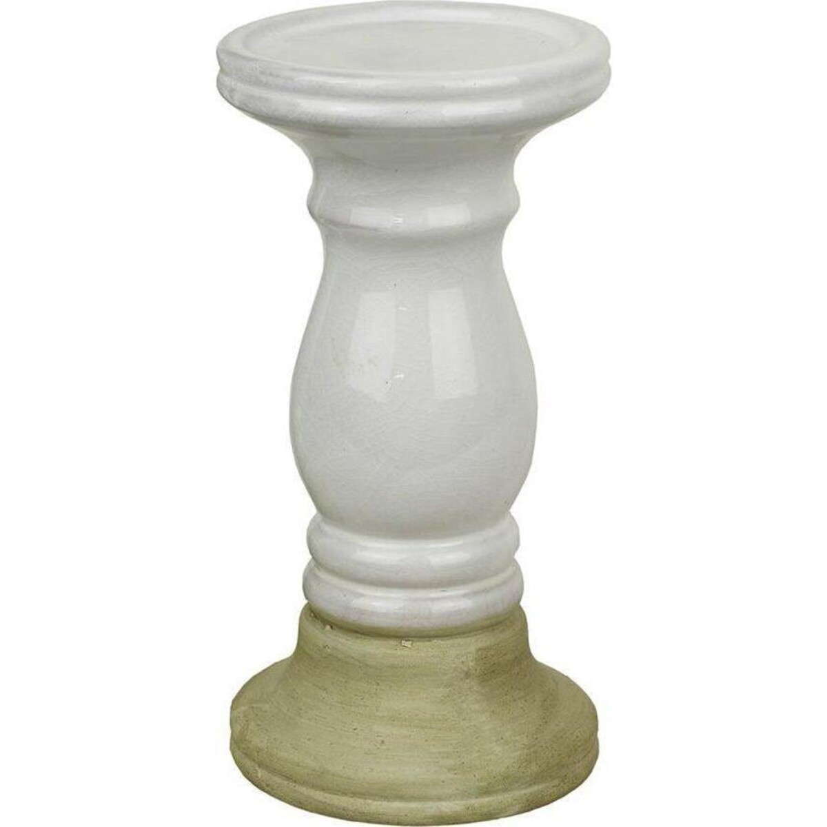 Add more of style to your dinner table, coffee table or any space for that intimate kind of lighting. This gorgeous candle stand made from ceramic will lend your space with a cool sophistication that comes from dainty pieces of artful décor. The lovely structure of the candle stand has a glazed finish n white with a golden beige colour at its base. The rounded stem and the round platform on which a medium sized pillar candle can be easily placed makes it a lovely way of enhancing not just the lighting on special evening, but helps create an innate sense of peace and indulgence that comes from using candle light. Be it your coffee drinking time in a super relaxed atmosphere or your after dinner moments add this candle stand and illuminate the space in a more classic and subtle manner. The stand has a height of 20 cm and its top platform and the base has the same diameter of 10 cm making it very stable and well balanced.