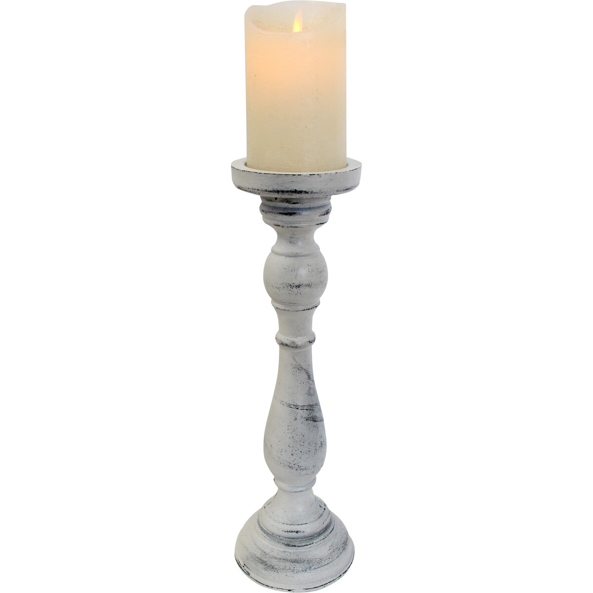 Being beautifully crafted in a vertically inclined dimension which measures 11 centimetres in its length, 11 centimetres in its width, and a whopping 36 centimetres in height, this Candlestick Mod White stands tall and distinctive. It is made using medium density fibreboard material which has its body decorated with several ringed shaped. The base is made in a wide shape with even surface for the perfect balance. It has an equally eve, wide surface top which would help in holding various types of candles. It has a whitewashed decorative finish.