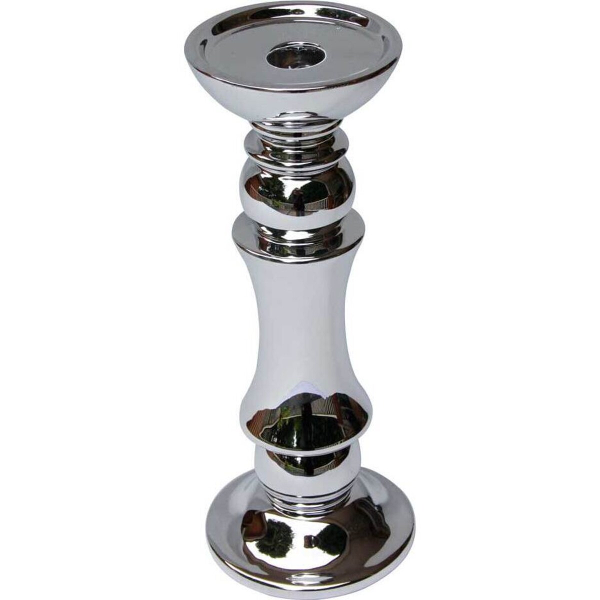 Enjoy lighting your candle anytime you have guests or anytime you are having dinner or just enjoying a good evening at home. This eye - catching silver candle container is sure to include a stylish look to your dining or living room. Its shinny surface makes the surrounding look very bright and stylish, thus adding more glamour to the room.é Put in your preferred candle and build an alluring look at your forth coming dinner celebration.é Its dimensions are 11x11x27 cm. Looks grand by itself or combine it with the smaller candle holder as well available in stock.