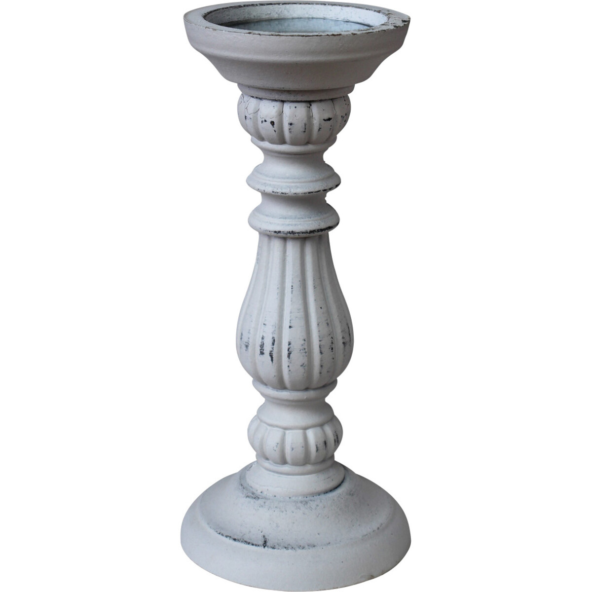 Crafted from MDF, this wood look stand is a delight-with its shabby chic and antique styling-its woody appearance is touched in places with colour while the rest of it is plain, a simple enough design that has a central stem which is sleek ribbed finish in washed white that is shabby chic in style. The candlestand come with vintage heritage feel and its muted colour gives it a great advantage of being used for those subtle and classic look settings that could do with some candlelight illumination. The stand is all of 25 cm in height and could be used on the floor or on low tables along with other sand sin smaller sizes. Will look especially appealing in shabby chic look interiors or the settings that have that vintage kind of look. Made from MDF, with rubbed paint that builds in age and antiquity. A must have if you desire to use alternate illumination from time to time.