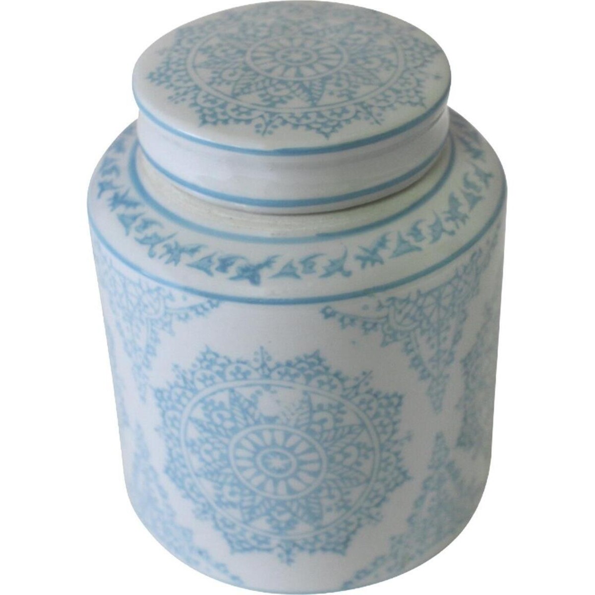 Whether it is the fresh new batch of cookies, some rare spices brought from the east or your large collection of keepsakes, cannisters are and have been a favourite for storage. The lid on this one fits wonderfully while the round cylindrical body despite its height balances its design perfectly. The creamy white body hosts the snowflake design with much style. Very farm and cottage in its feel, you could in fact create a set of such cannisters in varying sizes on your kitchen shelf or the sideboard and lend the space much beauty. The artisanal quality of the piece is evident in the manner in which the pattern and the ergonomy of the piece has been created. The interiors can be cleaned up with a wipe of cloth and it could be washed as well. The cannisters will soon be your favourite means to add a touch of retro elegance to any space. Add more such storage not just for its immense utility but also its beauty.