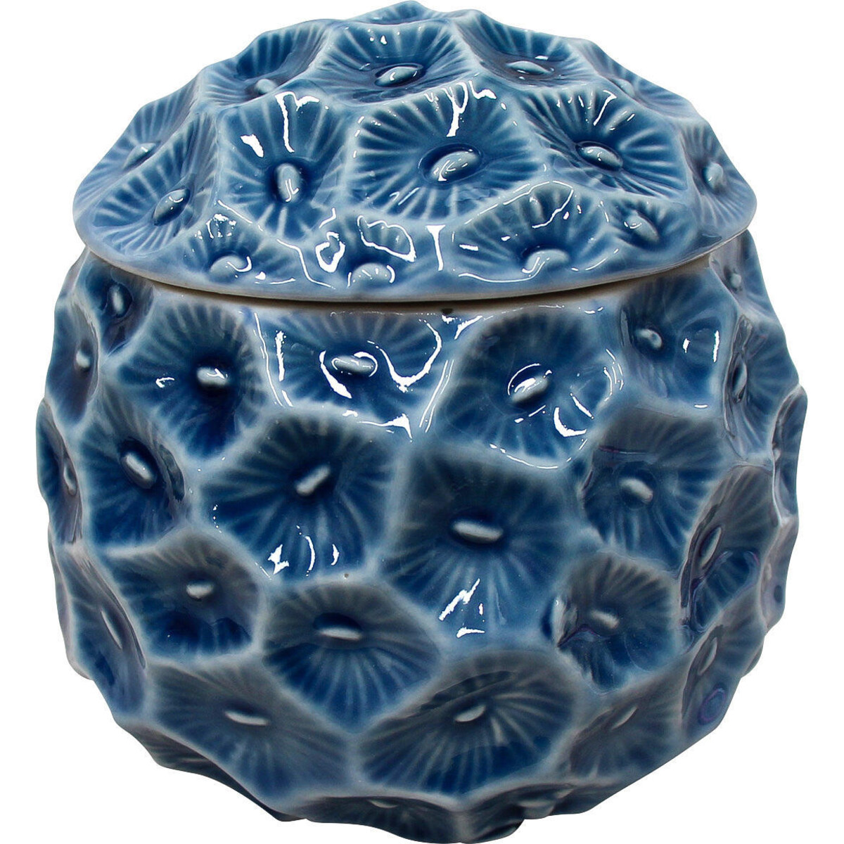 Add this sea sponge canister to your home collection to bring a bit of the sea indoors. Featuring detailed carved indentations and a blue and white glossy finish, this container makes a perfect accent to any living space. Keep it for storing candies, pulses, sugar, coffee, leftover cookies or baking goods in the kitchen or for cotton balls, small jewellery and knick-knacks that are practical and ideal for everyday use in the home. It comes with a matching carved lid and makes a charming and classy addition to a countertop or table, especially when there are guests to entertain.