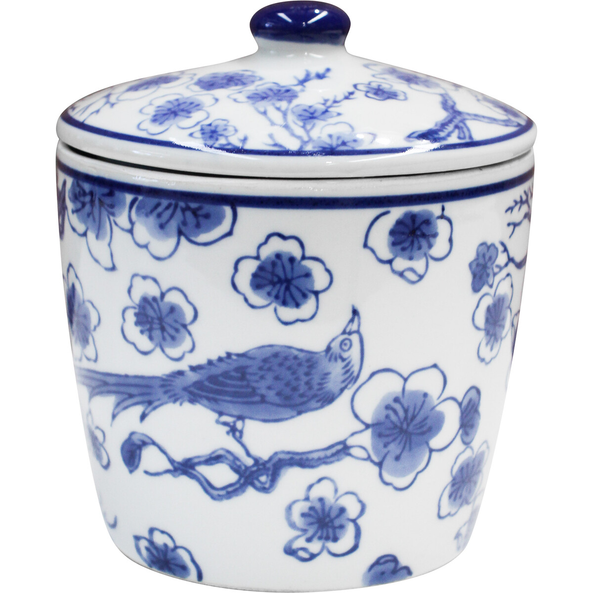 We have to admit, we really love when a storage canister actually looks beautiful on a bench. And this one - our 17x17x21cm Medium Blossom/Bird Cannister - really has that unique wow-factor in every single piece. It is exquisitely finished with a blue handpainted and glazed blossom and bird design on fine porcelain, so every little detail stands out. You can see the artistry up close - and yes, there are imperfections in the finish and glazing, which is part of its charm. We do not classify this as a fault at all.
