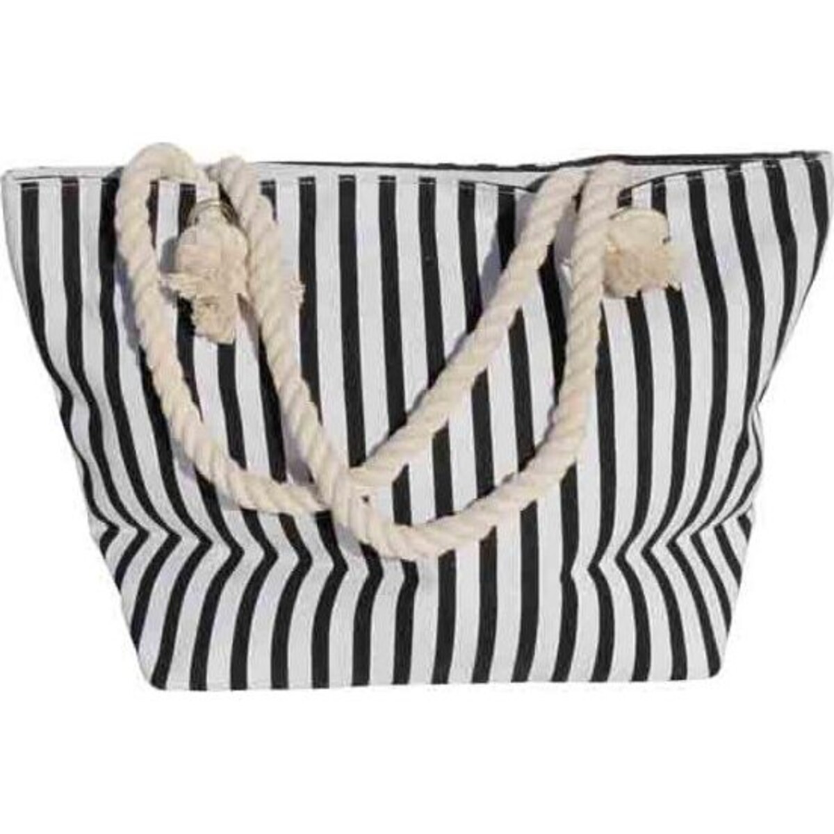 The Canvas Bag - Stripe Black is a stylish shoulder bag that comes in a trapezoid shape. Its striped pattern which made use of thinner black stripes along with thicker black stripes created a light casual feel. This one is perfect for less formal settings. But with the right dress matchup, it can also be formal. Because of its light colour scheme, this shoulder bag is great for daylight use. And because of the pearl white colours, it is also great for use during winter season, along with a winter-themed fashion. One unique feature of this shoulder bag is the unconventional choice of material for the handle strap. The designer decided to choose two straps of white rope and this gave the design a casual and light look.
