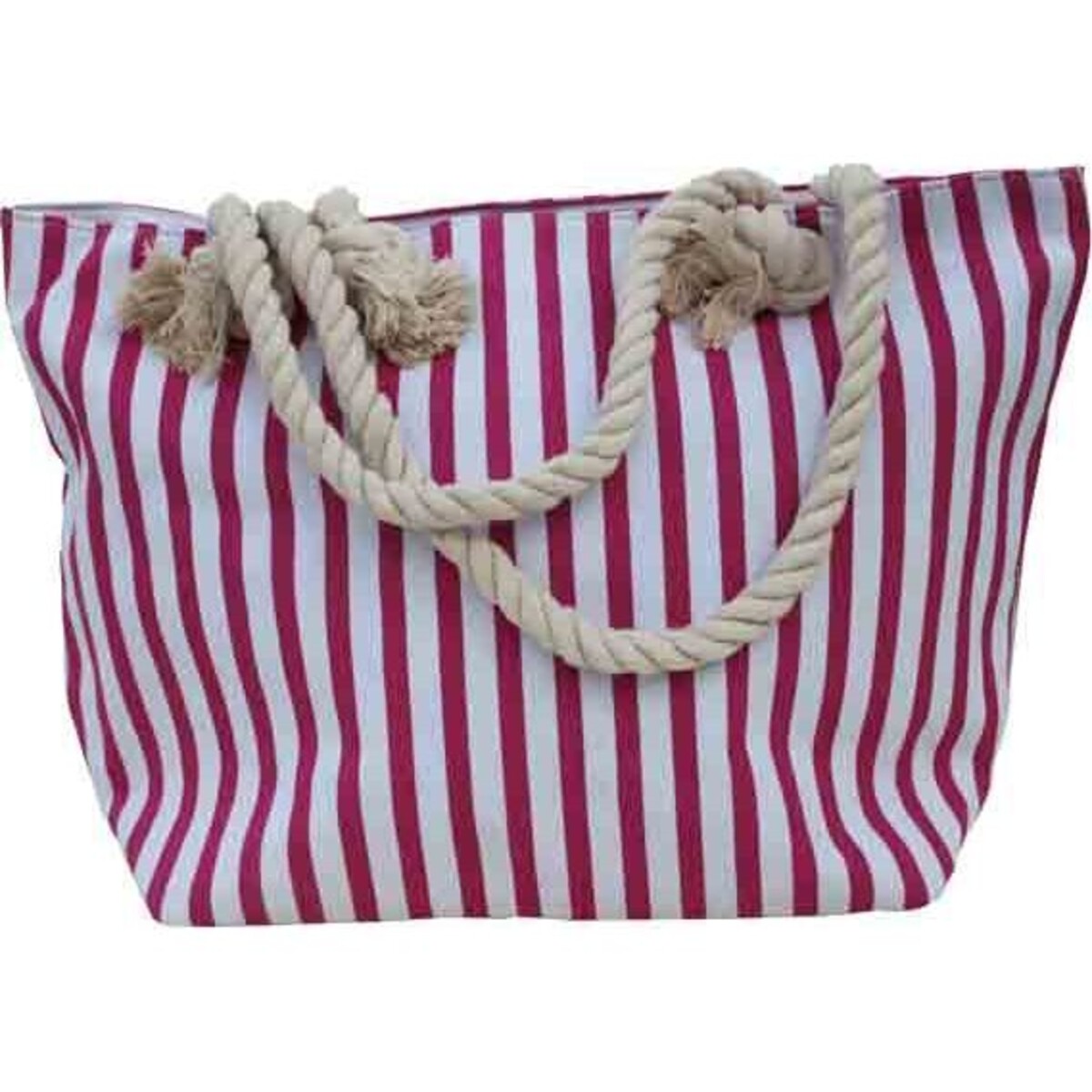 The Canvas Bag - Stripe Pink is a stylish shoulder bag that features a contemporary style. It is fashionable for all seasons and the colour scheme is versatile. And the use of rope for the handle strap gave this shoulder bag a unique look. Design-wise, the bag is conventional in approach with its trapezoid shape. It is sizeable enough at 47cm x 32cm x 16cm and is perfect for holding quite a lot of stuff. Despite its width though, it looks slim enough thanks to its vertical striped pattern. The stripes consist of white and pink stripes. The overall 'light colour' theme of this bag gives it a nice chic look. It looks youthful enough for teens but also looks mature enough for office women.