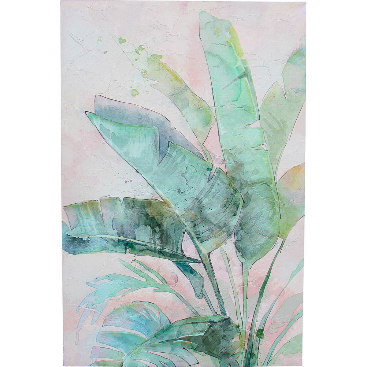 Infuse your space with the beauty of a tropical kind. Subtle shades of green make this delightful looking piece of art for your rooms-be it the living room where you would like to add a nature-based angle for summer-or your dining space where, you wish to create a tropical appeal. The leaves that feature on the canvas are tall, rising handsomely from the stem-each one so well defined and yet the appeal of such art lies in its ability to stand out an yet blend in the soft green colours-the usage of shades and hues subtle and simple brings out the otherwise intense look that such foliage has. The 90 cm height it has and the 60 cm width makes it great pick of placing right above consoles and tables. The soft hues of green, the artistry of detailing makes it a great means to give your décor that update.