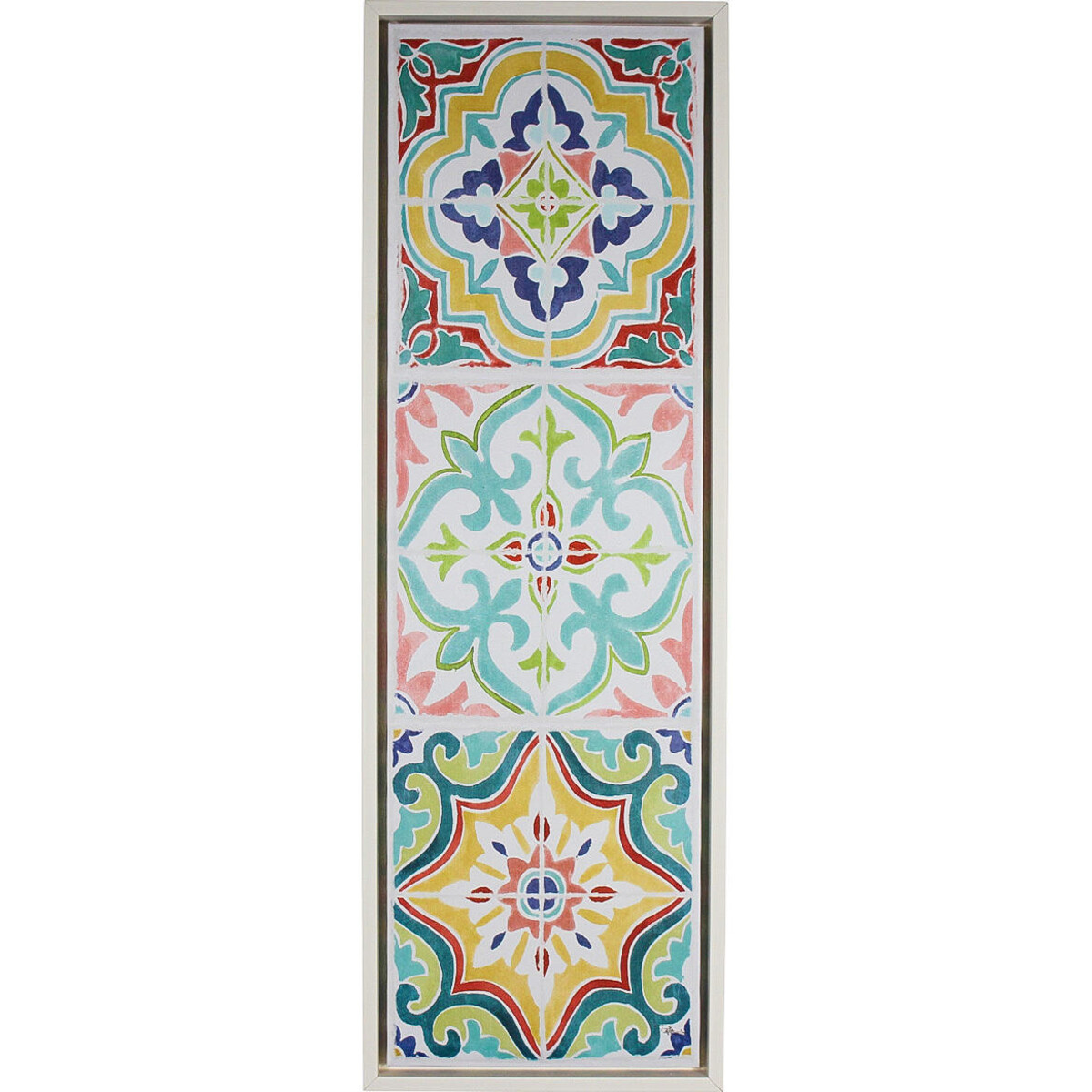 The usage of colours sets this long 90 cm high canvas apart. Also setting it apart is the unique slim and tall shape that ideally makes it space divider between two spaces that you would like to allocate for different purposes. Create that infusion of colour for spaces that need to lift the dullness away. The long panel is a perfect means also to build in mid - eastern vibes in spaces that already hosts the look. Adding Marrakesh lamps, some brass artefacts and perhaps a few votives places here and there with palms in the backdrop will lend the space just the right kind of décor direction. The polyester canvas is framed perfectly to give it the right kind of finish. Easy to place on the wall and the kind of colour vibrancy it holds will be retained despite much usage. The panel is 90 m in height and 30 cm in width and the pine wood frame it has lends it a clear natural definition.