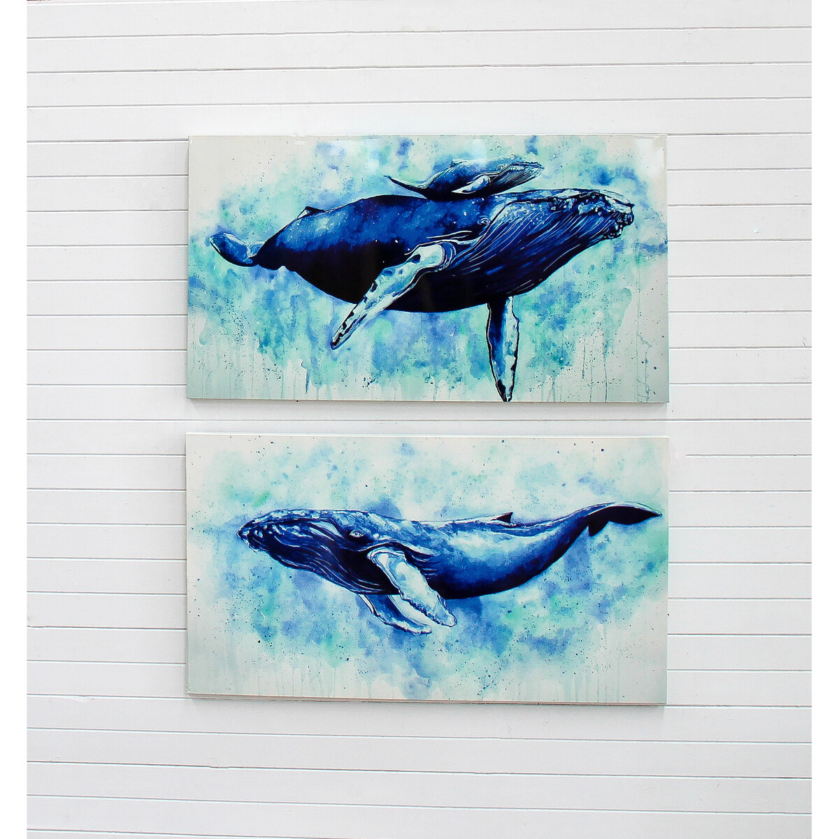 The Canvas Mother and Calf Whale adds a trendy layer to your home décor. Its ideal for those who are looking to create new nature vibes. It can be mixed with other colour palettes to create a bold and vivid environment, or placed in a collage of contrasting tone to balance. You could place it behind a flower vase on a cupboard to create a smooth tie - in. it is made from the best quality canvas for durability, and for its real - life natural appeal. The underwater setting creates a beautiful effect when the lights bounce off it. Enrich your space with this canvas