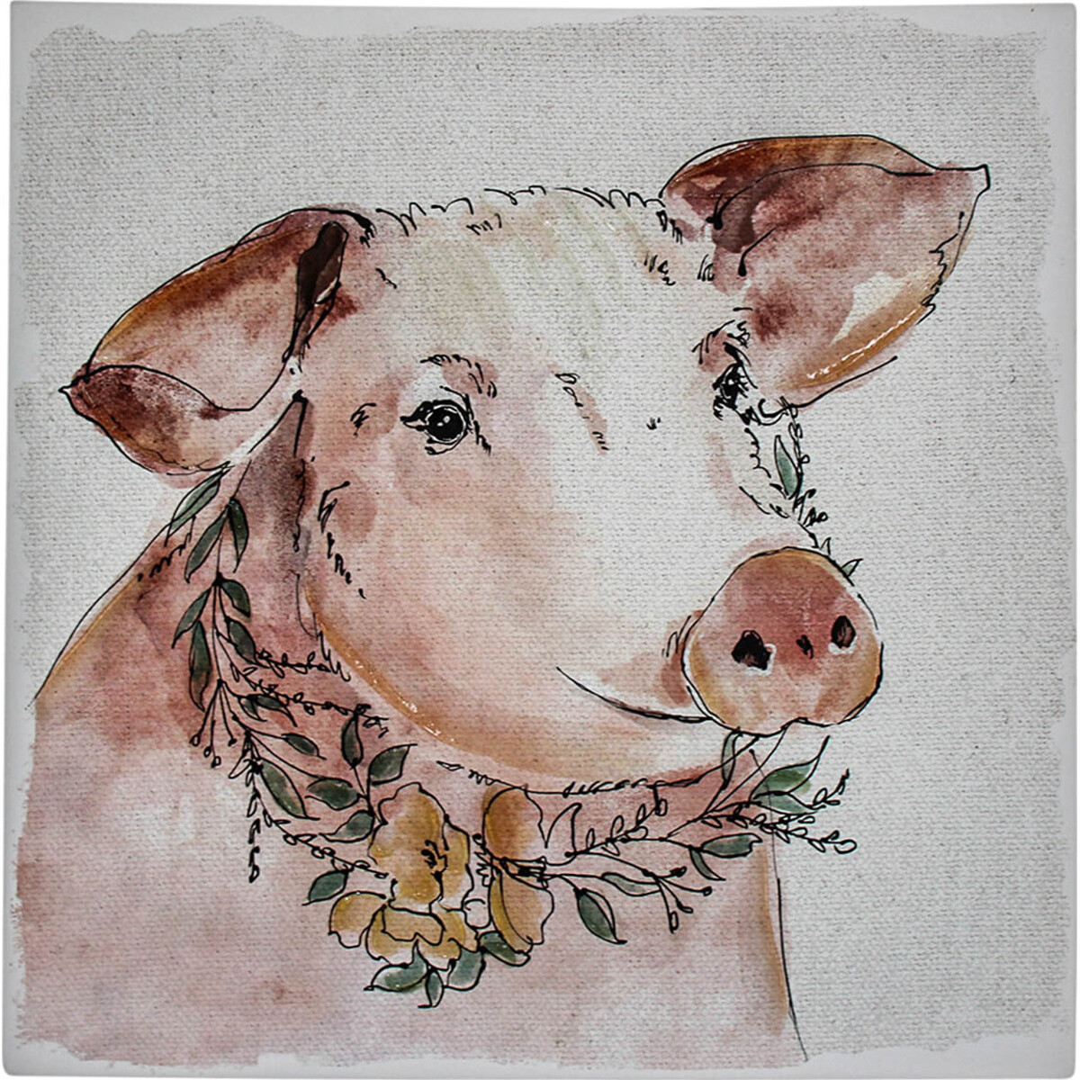 Did you know that just like human beings, pigs also dream? That is quite surprising right? But research has shown that we have more in common with pigs than we thought earlier. This canvas painting therefore brings this our dream partners into limelight through its colourful depiction of an amiable looking pig wearing a wreath around its neck like a necklace. This floral wreath addition to the colourful smiling pig would make it a particular favourite among girls who are known to fancy the colour pink in the first place. Place your order now; there are 18 of this canvas painting in every carton.