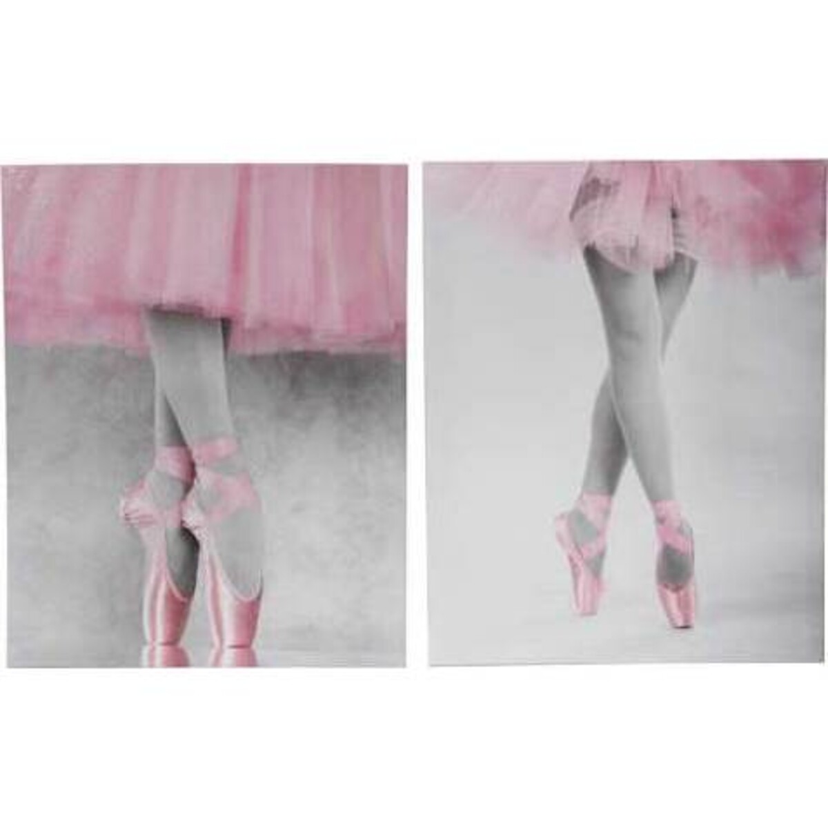 These matching canvases are superbly subtle in colouring and style to fit many environments from bedrooms to hallways and living rooms. The colours are light, dreamy and in keeping with many styles of decor, and thus highly versatile for interior designers looking to add interest without harsh distractions. With low saturation pink and grey tones, the images ooze style, finesse, and convey the artistry and poise of the ballerinas on points. Ideal as a gift or as functional display pieces, this canvas set purveys a relaxing ambience that will be attractive to many people. The artwork has a sense that it may form part of a gallery exhibition and each canvas compliments each other perfectly if displayed together. Alternatively, the images can be displayed effectively in isolation - perhaps starting the theme in one room, and continuing it in another.