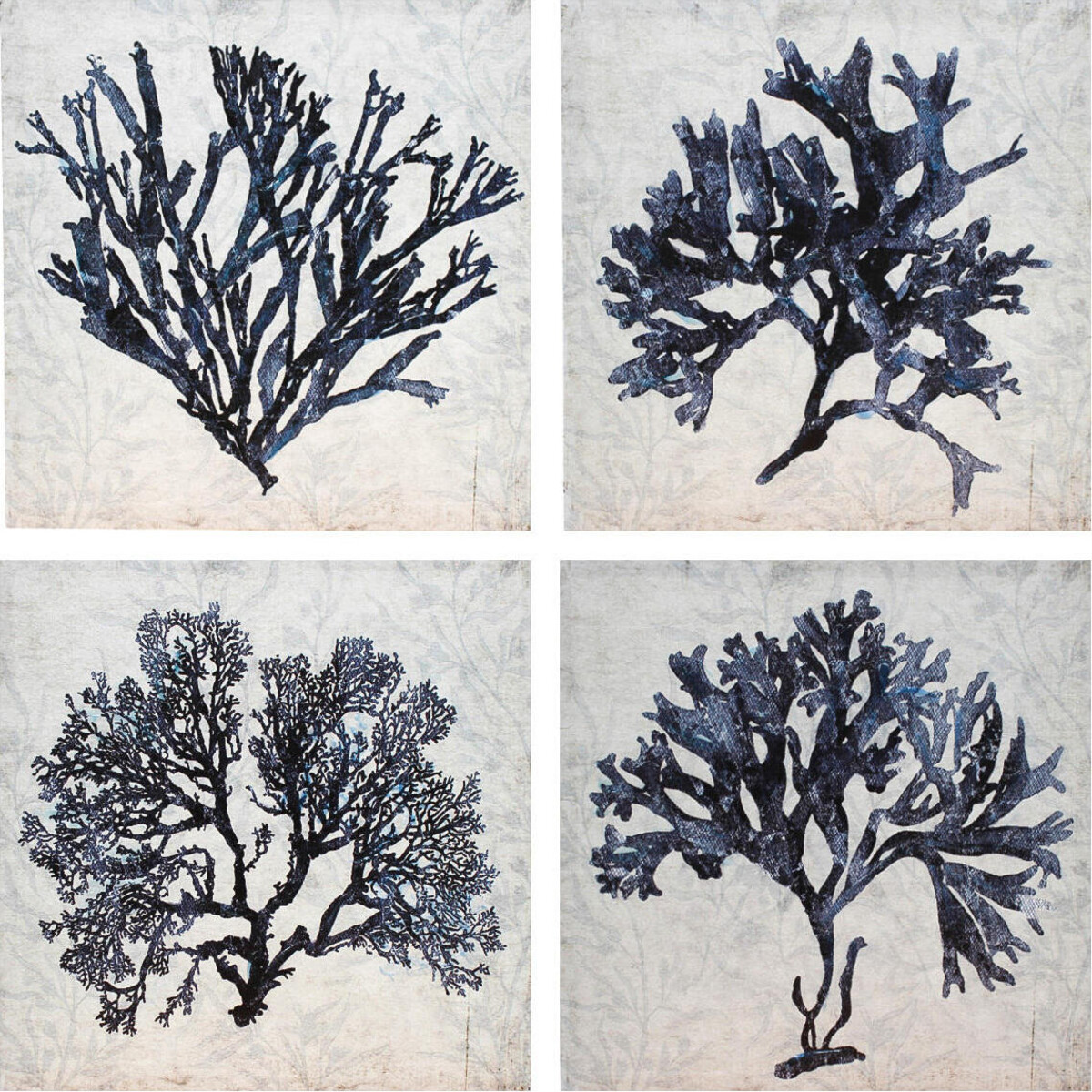 Contemporary style and beach living come together in this elegant coral collection that celebrates the salty sea. Awash in soothing tones of blue, natural materials, and detailed illustrations, this collection makes trendy coastal decor that is built to last. Perfect whether hung together or across a room, each print in this set measures a perfect square of 40cm x 40cm and is wrapped in a wood frame. These will look very classy for a beach home and can be cleaned with a soft lint-free cloth by dusting lightly.