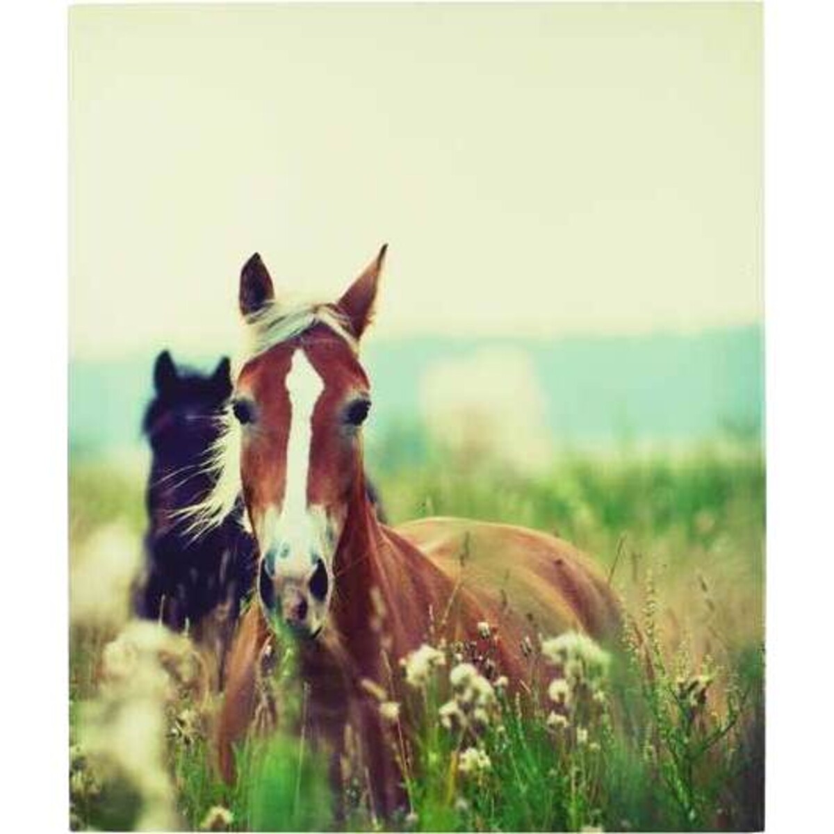 Looking at the meadow in this canvas print it is hard to imagine that it is a print - the clear defining of lines, the details all so perfectly captured in the minutest of details looks flawlessly beautiful. a great way to enhance the beauty of any space with the simple yet rustic beauty that horses and countryside pictures can bring. All things earthy and natural in the home decor will thus blend in great with it. The size of the canvas at 56 cm in height and 46 cm in width makes it appropriate for all those walls that seem to seek a bright and sunny picture of happiness - be it the living room, the hallway or the bedroom - this print will bring a smile on any face that looks deep into its message of freedom and beauty. The superior printing has added an additional depth to the print making them so real and magical.