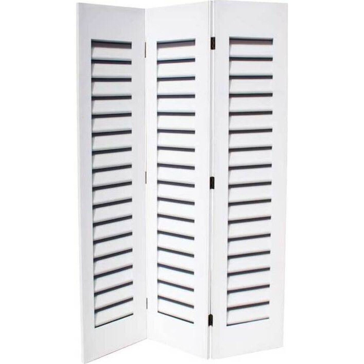 Art quality canvas wrapped on frames makes this wonderful option of all those who wish to create an unusual backdrop or those who want to carve a little niche that is safe and very private-such screens come in very handy to reallocate spaces to do just that. Use this three panel 6 feet high screen that comes in a lovely shade of off white with shuttered door print all over which makes its appearance so very shabby chic. Great for homes that need to convert a larger space into more than one area and also for those that wish to use a corner by giving it a great looking French themed period look backdrop. The off-white colour and the louvred door look is nothing fancy, yet the minute it forms the backdrop it will instantly make the space come alive with a certain kind of drama that is entrenched in the past. The 180-cm tall screen is 120 cm in width and is easy to fold and stored when not in use. Could be used as much in personal spaces as in commercials ones for creating portions during exhibitions and the likes. Lightweight, yet sturdy, easy to move around and place where you feel.
