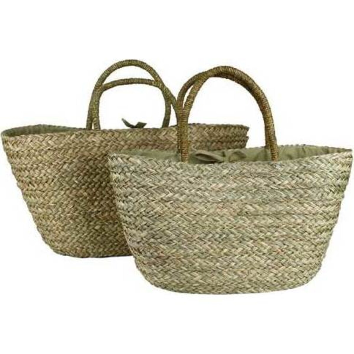 It is of course in their classic natural colour and feel wherein lies the magic of sea grass woven basket bags and in this par one can find the same organic charm of this handmade bag that originally ware made in the tropical countries. The open weave, the super soft feel on the hands and the fact that the bag is supple to the feel makes it as suitable for using to keep laundry ,as much as a shopping bag or for a day out making one's purchase at the farmer's market. The bags come in two sizes - the larger one is 70 cm in length and 42 cm in height while the smaller one is just a little bit smaller. Most wonderfully finished with no rough or scruffy ends, the bags truly come with impeccable finish with an inner ling and tie up closure at the opening that can be knotted to keep things in place. An ideal day bag especially for days out at the beach or a picnic lunch that needs to be carried. A breath of freshness in a space teeming with more artificial fabrics and looks - this sea grass bag sure looks very refreshingly different and traditionally stylish.