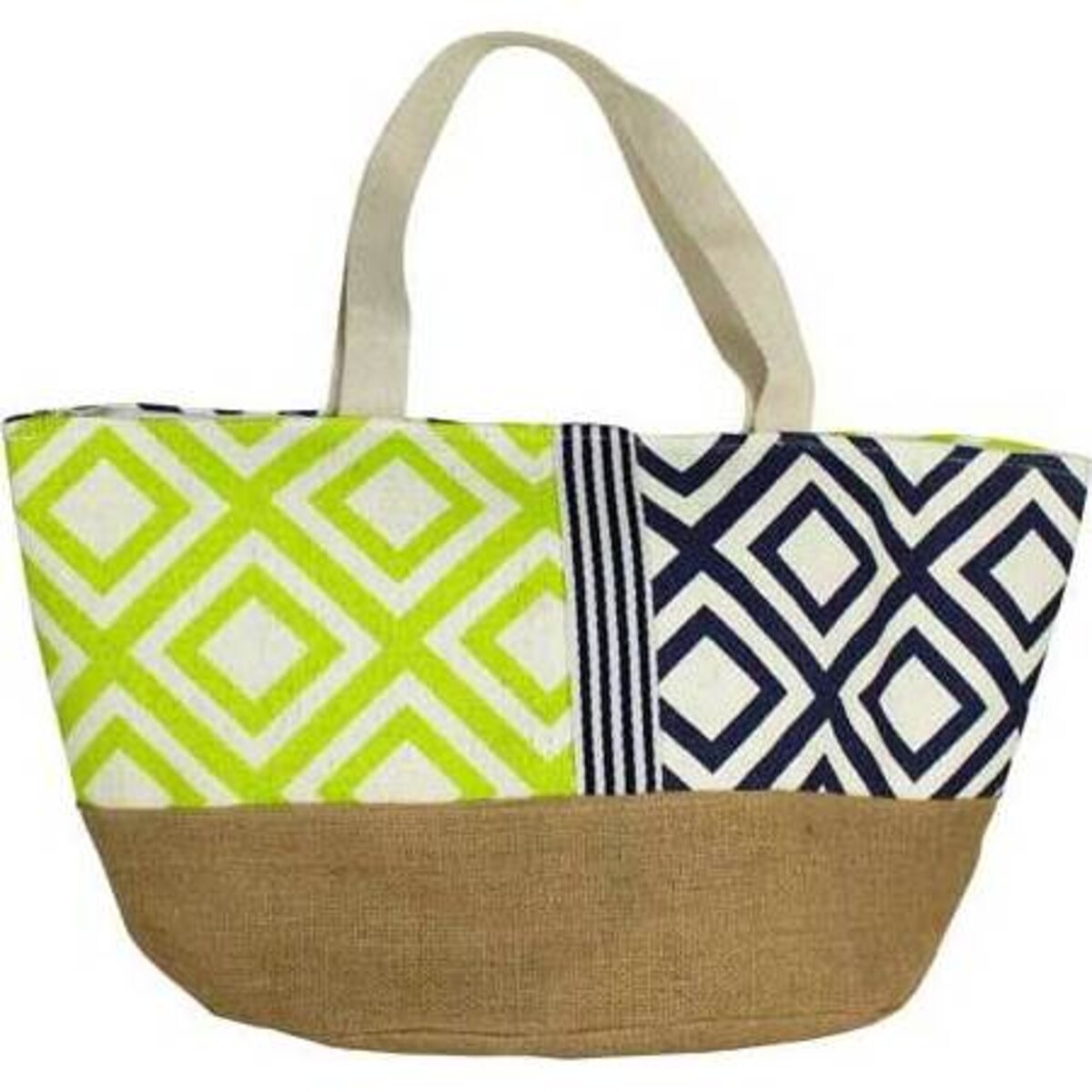 The bag is a mix of two materials-woven paper and hessian and they look scintillating not just because of the manner in which the colours are combining so well but also the manner in which the design as well as the utility of the bag has been well though over. The pattern printed on the bag is bold and the look of the bag is cheerful and truly unique. The lower base has this patch of golden hessian while the rest of the bag is made of woven paper that is lightweight and very durable. The bag comes with well designed handles and will be ideally suited for shopping or day outings. White, blue, beige and green-colours of such hue that they can instantly cheer up even a dull looking outfit that one would be wearing.
