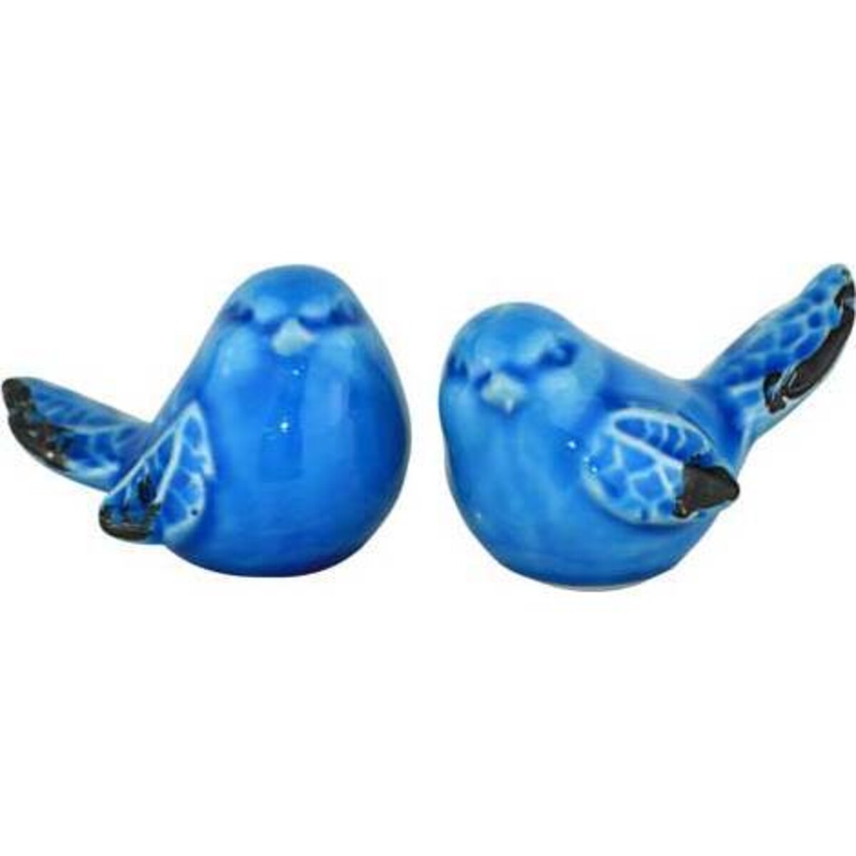Two tiny blue bird sculptures created from ceramic that lauds the detailed and audacious project of recreating one of the most fascinating of creatures in the wild that we encounter each day and are fascinated by. This set will set any space alive if not by their chirping but definitely by their almost life like looks.