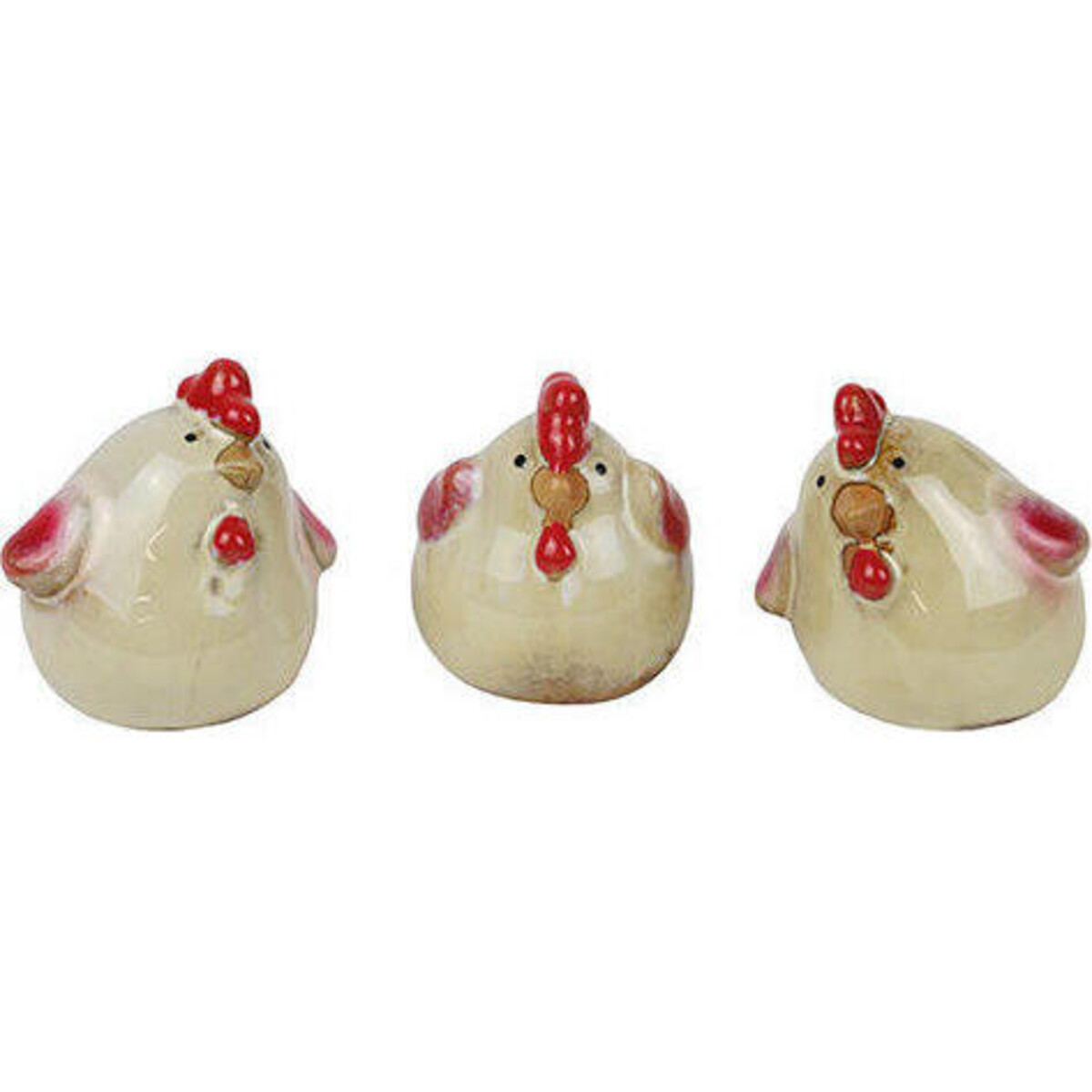 Adding little creatures made from ceramic can lend your spaces a look of natural charm - the kind that adds a touch of informal flair to the space. Make a difference to your small spaces by placing these beautifully created ceramic pieces that have been handcrafted with such perfection. The tiny chicks are red and white and despite their tiny little size do look rather real. All of 7 cm in height, the crown in red and the red on their wings seem to be making them seem homogenously like from one coop. The chicks seem to be contently sitting as if awaiting the next hatching. Add this tiny little décor piece to your mantles, place them in tiny garden rockeries or if you are planning on a terrarium or other garden arrangements where farm animals and birds add a spot of charm. The triplets will make your space more look more interesting - their round little bodies as if waiting to run amuck in the yard.