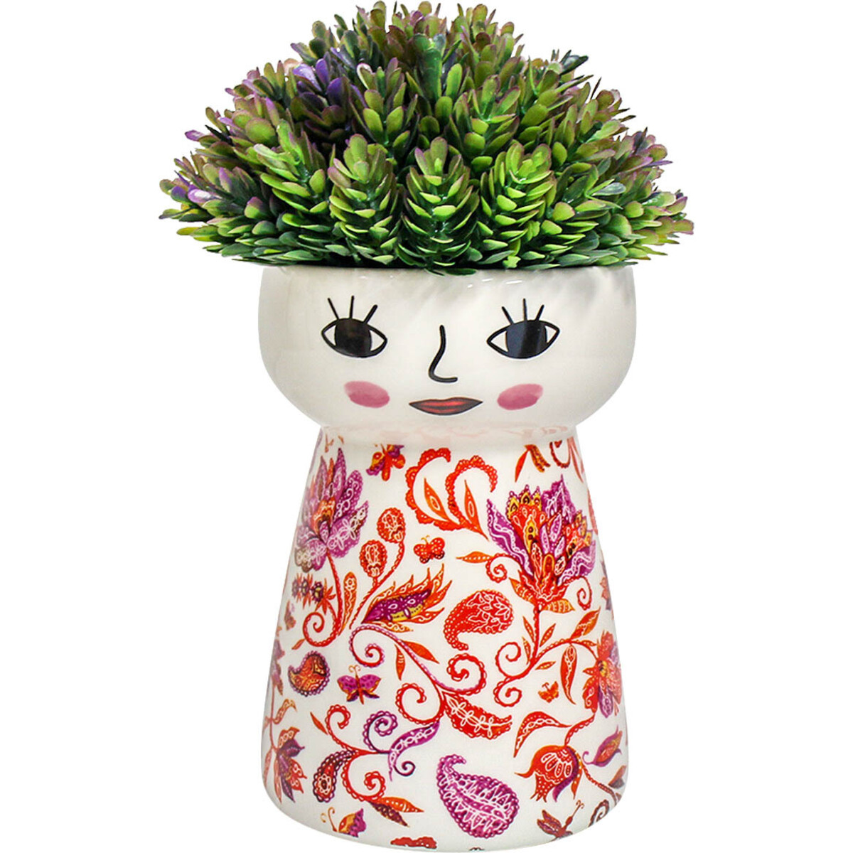 Due to the radiant aesthetic appeal of this Ceramic Doll Vase Vintage Pink, it can be used as a singular decorative ornament suitable for adding a touch of bright sophistication to living rooms as living room centrepiece, to dining room on the dining table, in the bedroom as a dresser table ornament and other strategic locations around the house. It looks even more stunning when used to grow natural ornamental plants or hold artificial flowers such as the pink or white poinsettia flower as it would blend with the beautiful pink palette of this vase. Due to being handcrafted, there might be slight differences in each.