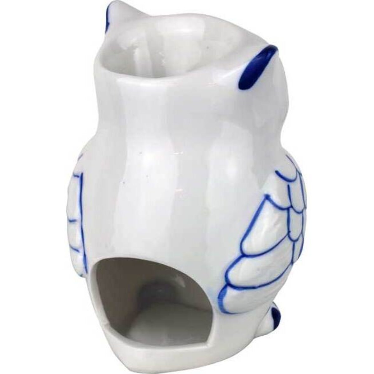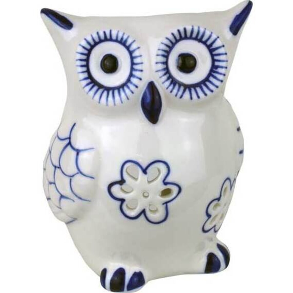 The smooth body fashioned from ceramic, crafted to perfection by hand, this owl comes with many features that are as close to art as to craft. The eyes are striking because of the manner in which the blue paint highlights seem to make them more dramatic. The blue highlights on the eras, the feet, the beak and the wings too look great. The flowers pattern on the body has perforations that allow the light from the candle to spread beyond and create some real drama with the space. The candle can be placed at the back with ease as the opening is wide enough to do so. The minimalistic design of this owl makes it all the more pleasing and the simplicity is want creates more interest in its effect as a lamp. The owl stands staring at you at a height of 13 cm and a width of all of 10 cm making it hard to miss and quite prominent when placed anywhere. A lovely smooth bodied creature whose enigmatic features are bound to grab eyeballs.