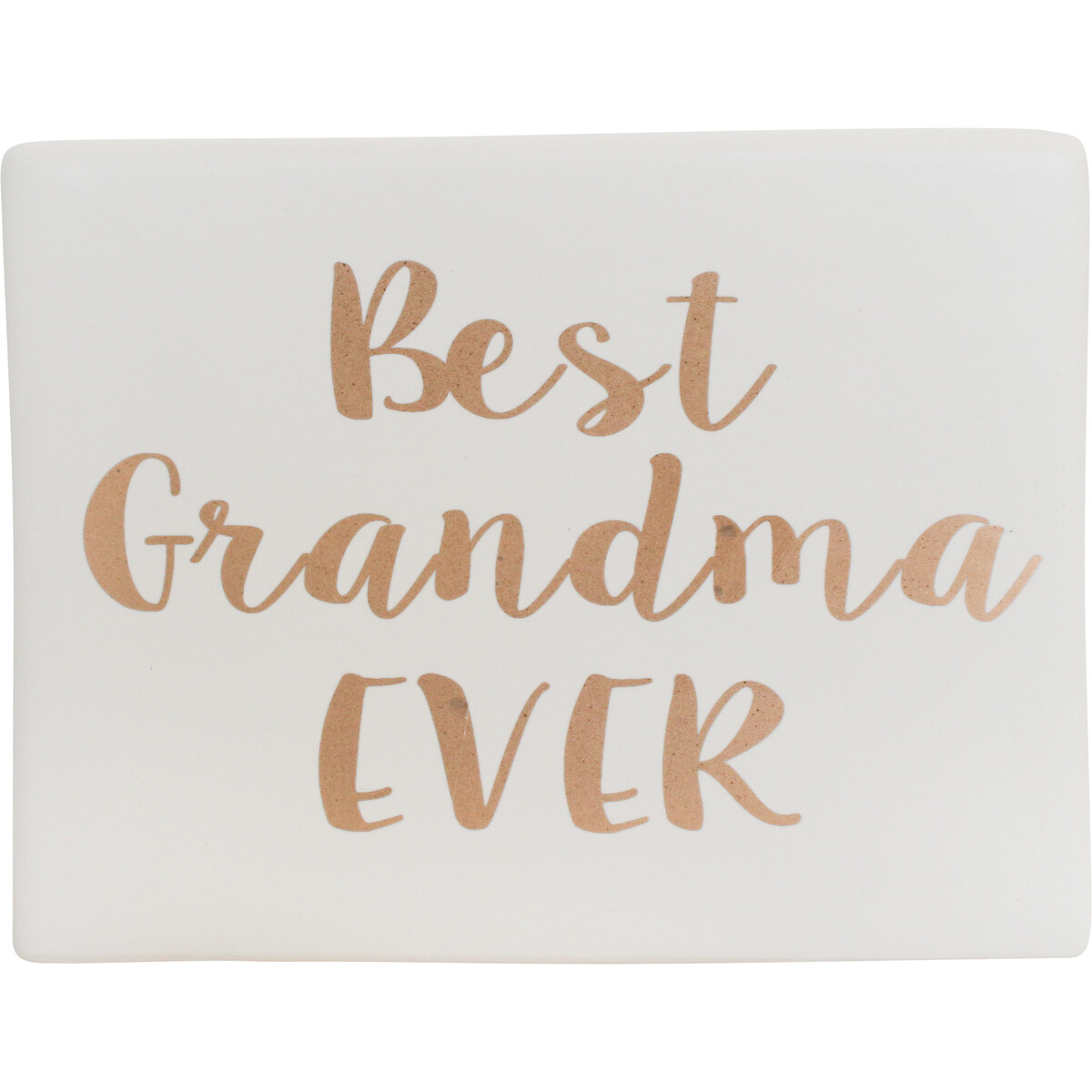 Give this ceramic freestanding sign that conveys so much love to your Grandma and feel the love surround the two of you instantly. The smooth white surface has the gorgeous lettering in golden colour-subdued and subtle in its beauty, so much like your grandmother herself. She would love to display this gift to all who care for things that hold emotional value. This standing sign is like no other as it has a touch of vintage appeal in its soft lettering style and its simple but deep words that convey the pure kind of love that one shares with indulgent grandparents. Gift it on any occasion and make her feel special and loved. An easy means to express the love that you feel in your heart-after all at the age that they are in - material things rarely matter- and this sign is all that will make them feel-warm, comforted and valued.